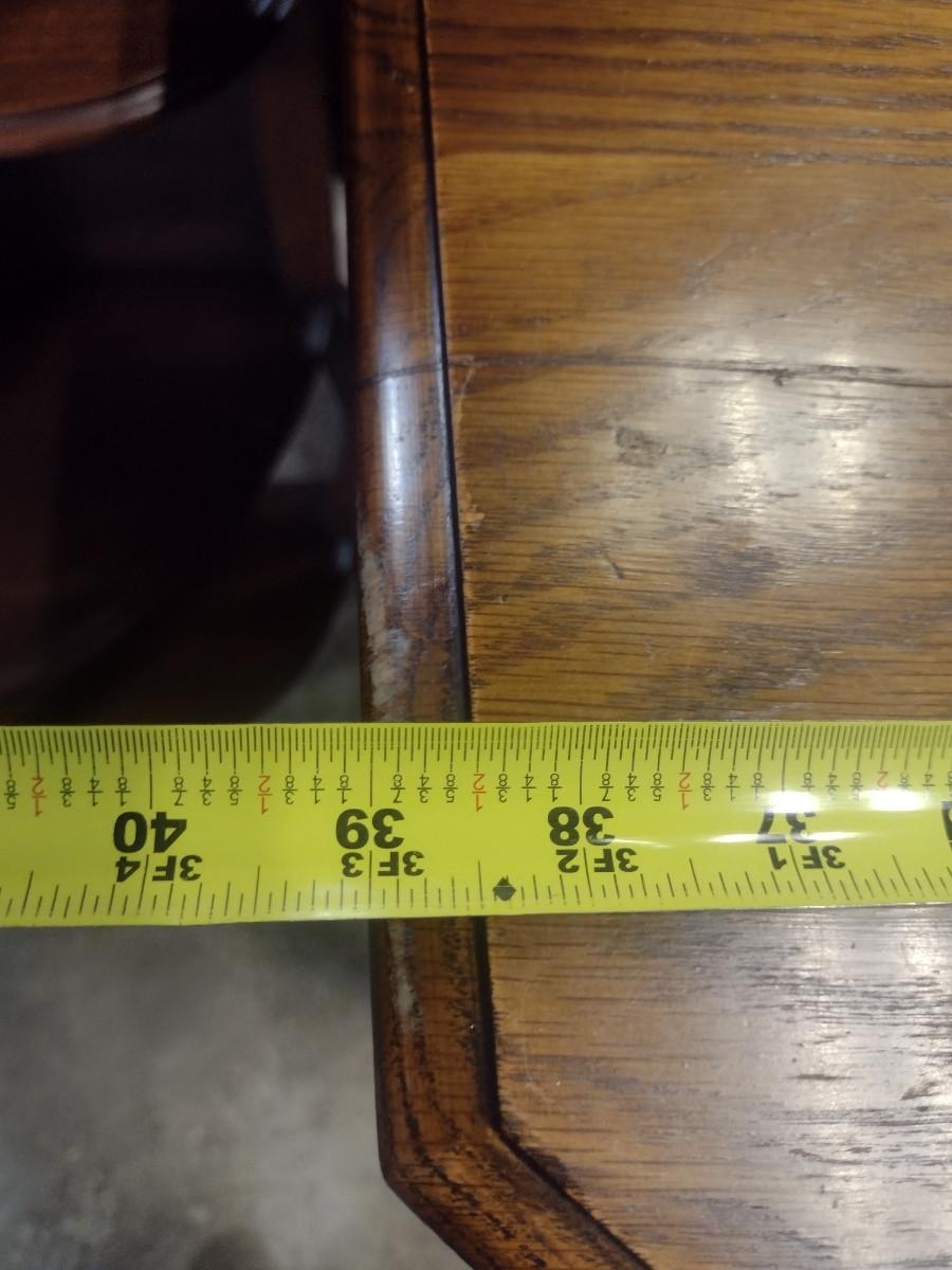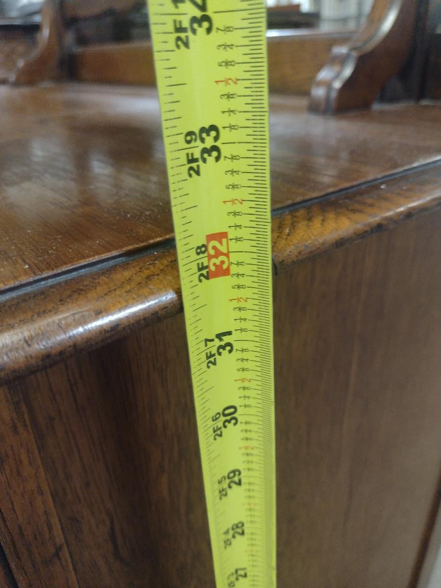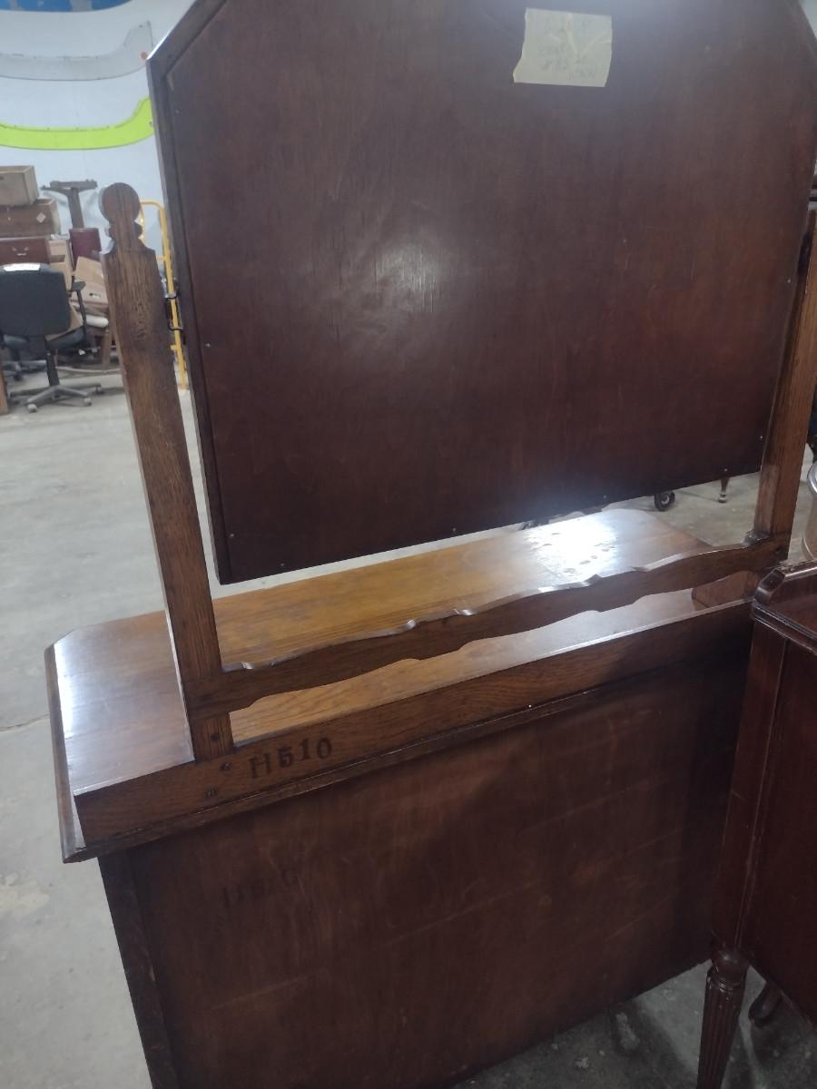 Vintage Solid Wood Three Drawer Dresser with Mirror. Please see all pictures for condition of finish. Item measures approx 39" wide, 18" deep, 32" tall. Height to top of mirror is approx 59 1/2". Mirror measures approx 25" x 19".