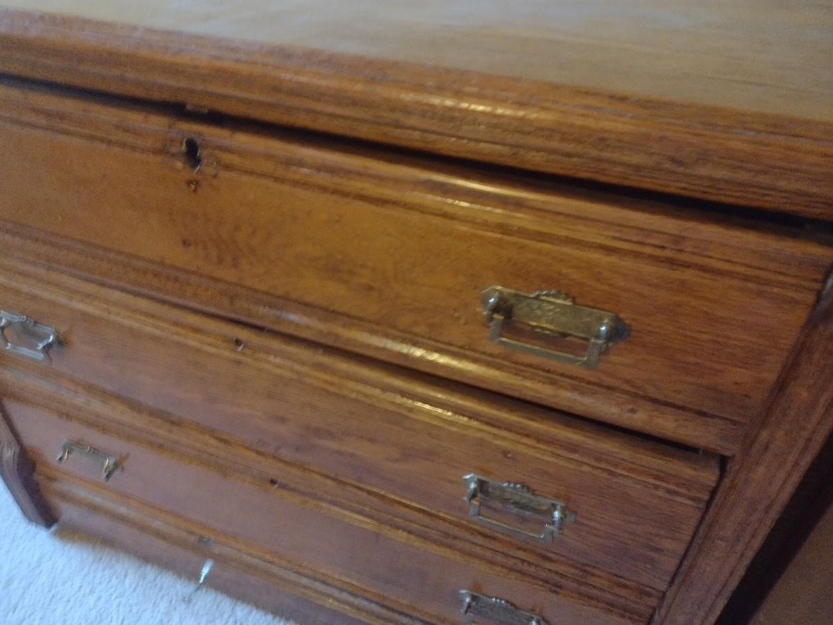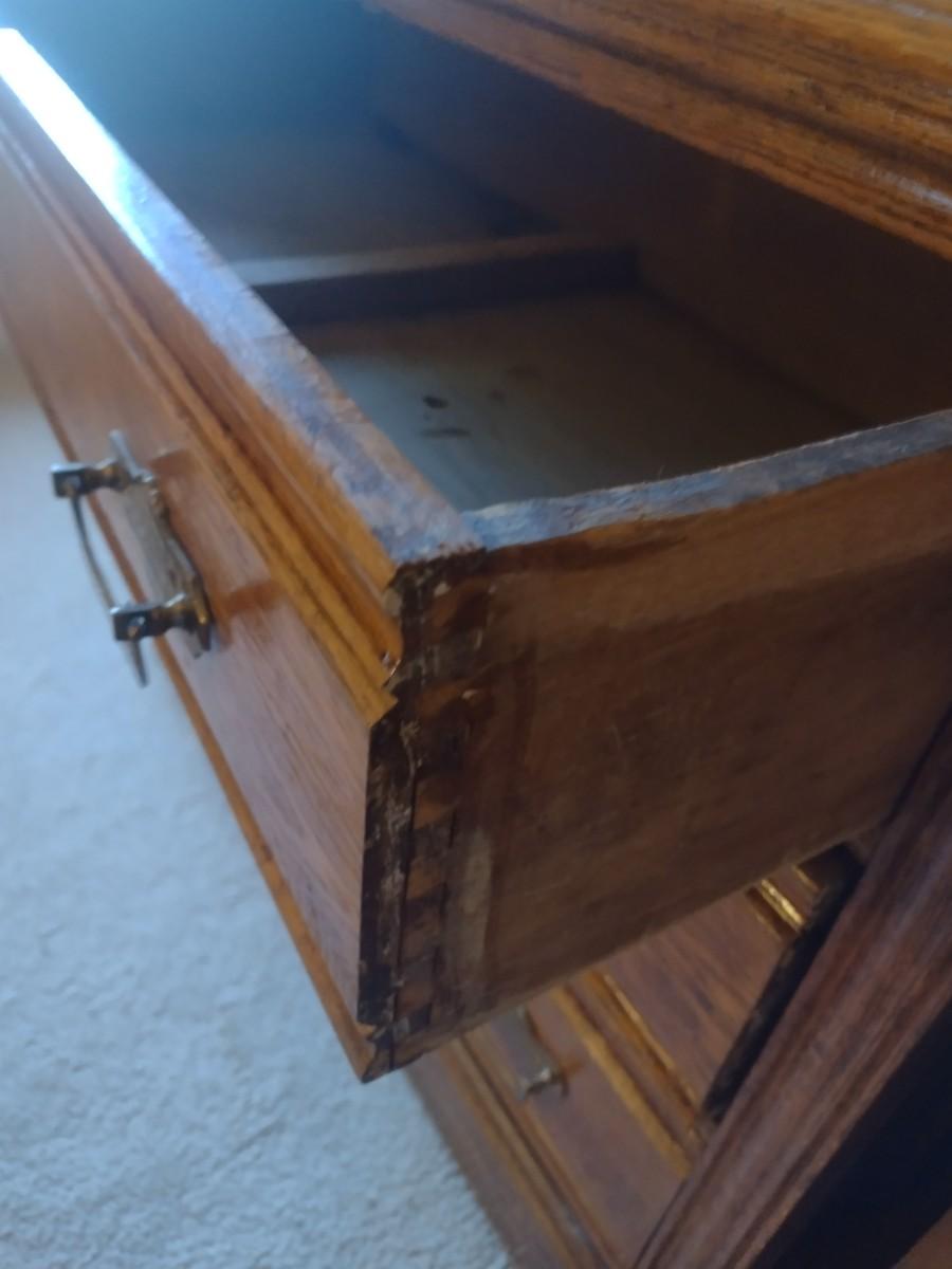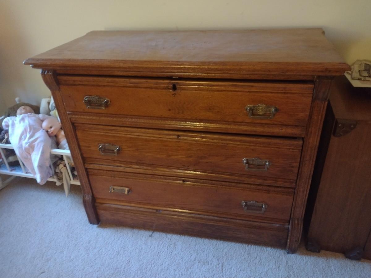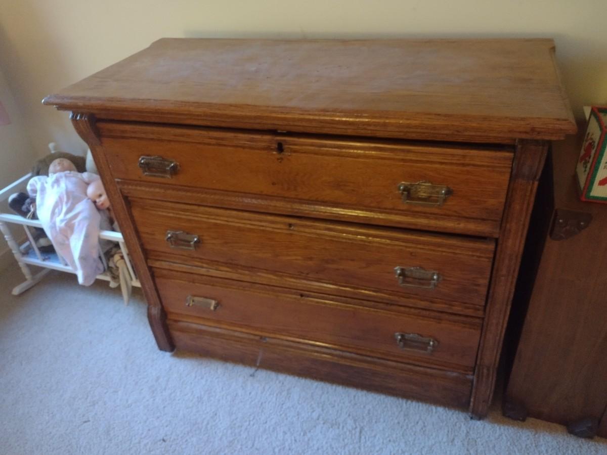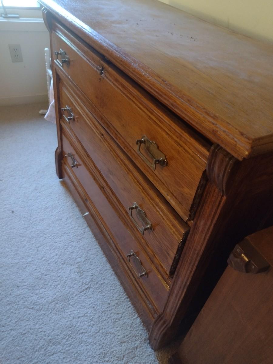 Vintage Solid Wood Three Drawer Dresser has some wear and scratches to the finish