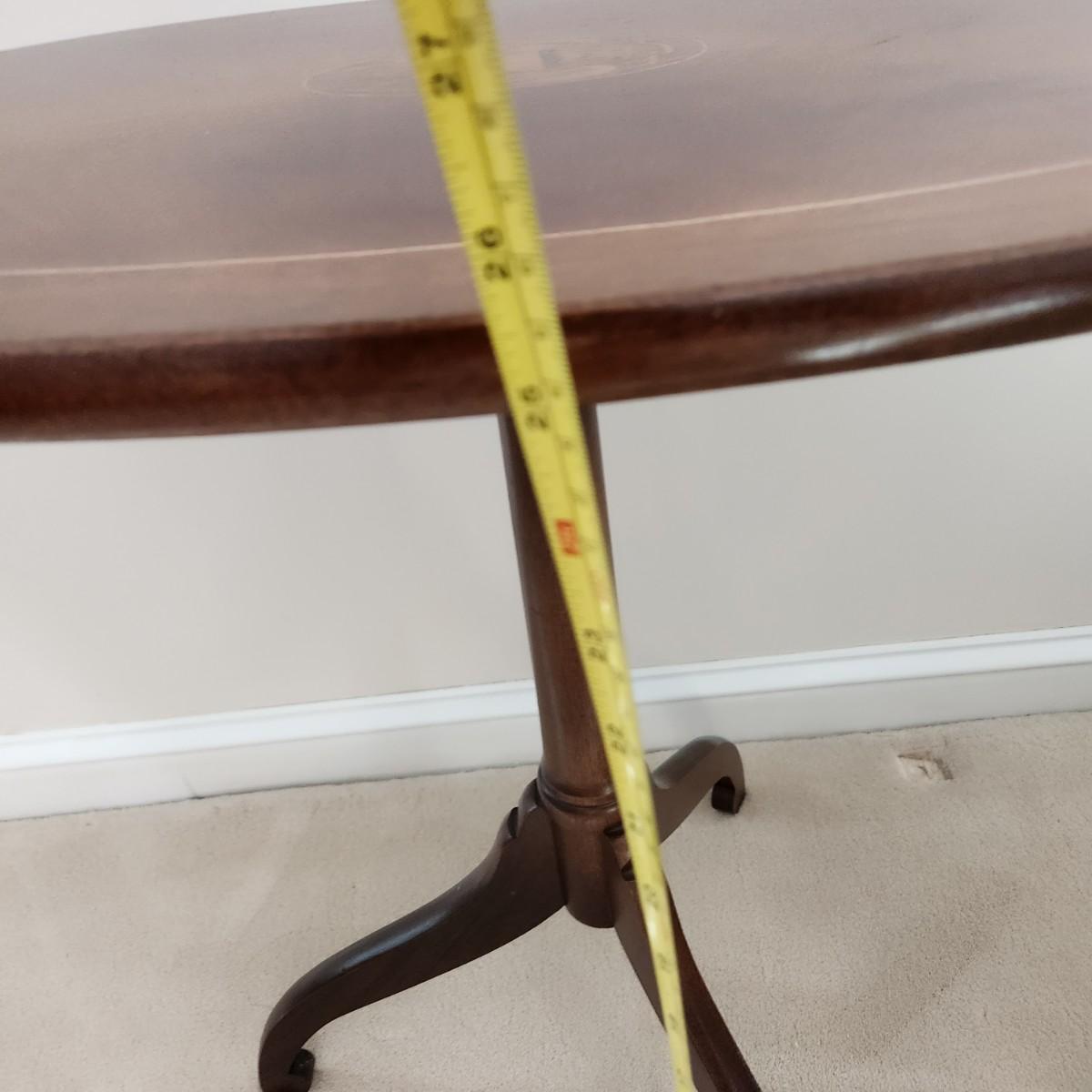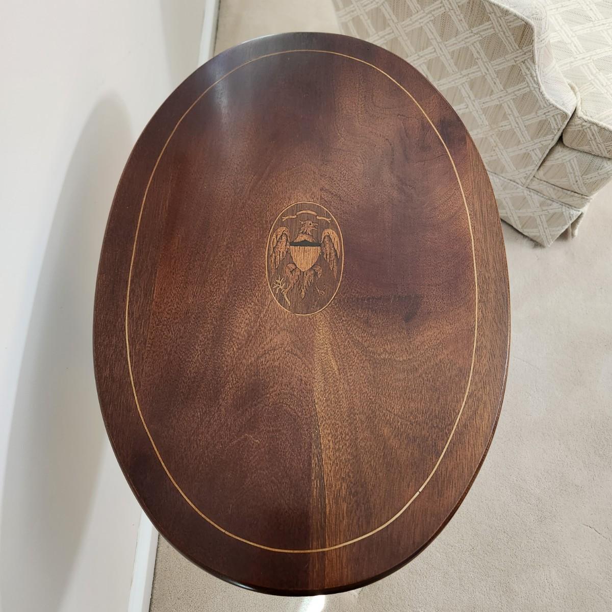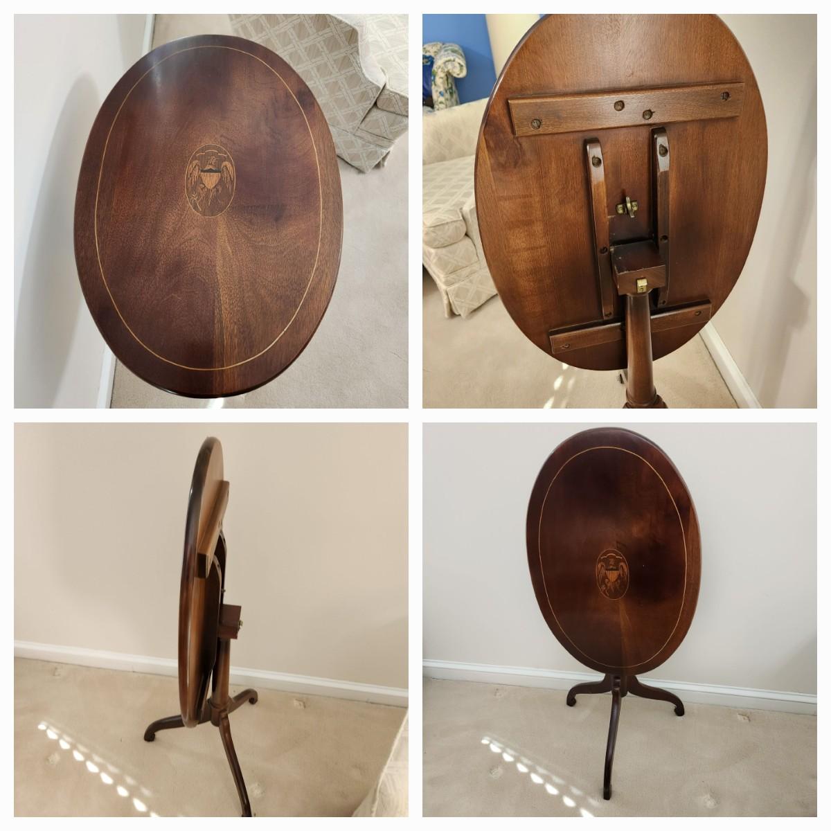 VINTAGE SOLID WOOD TILT TOP OVAL SIDE ACCENT TABLE  INLAID EAGLE