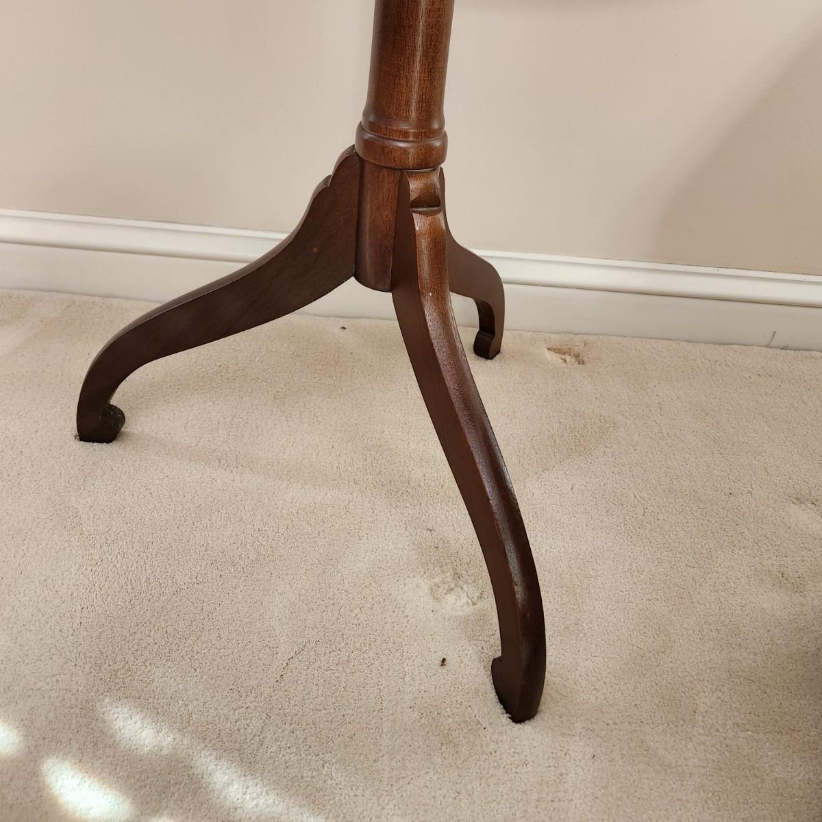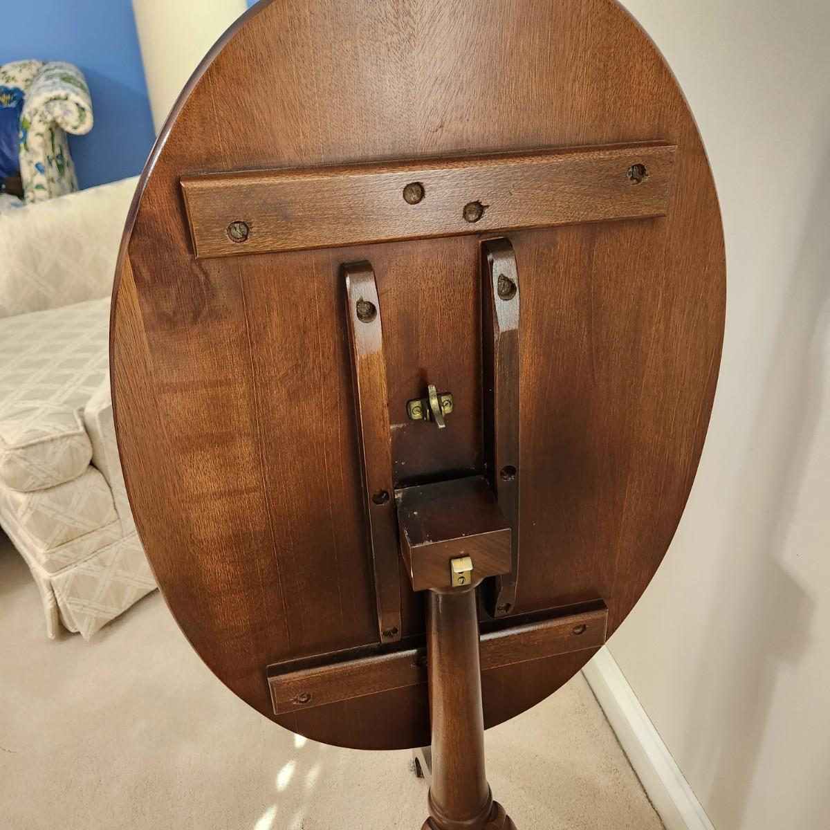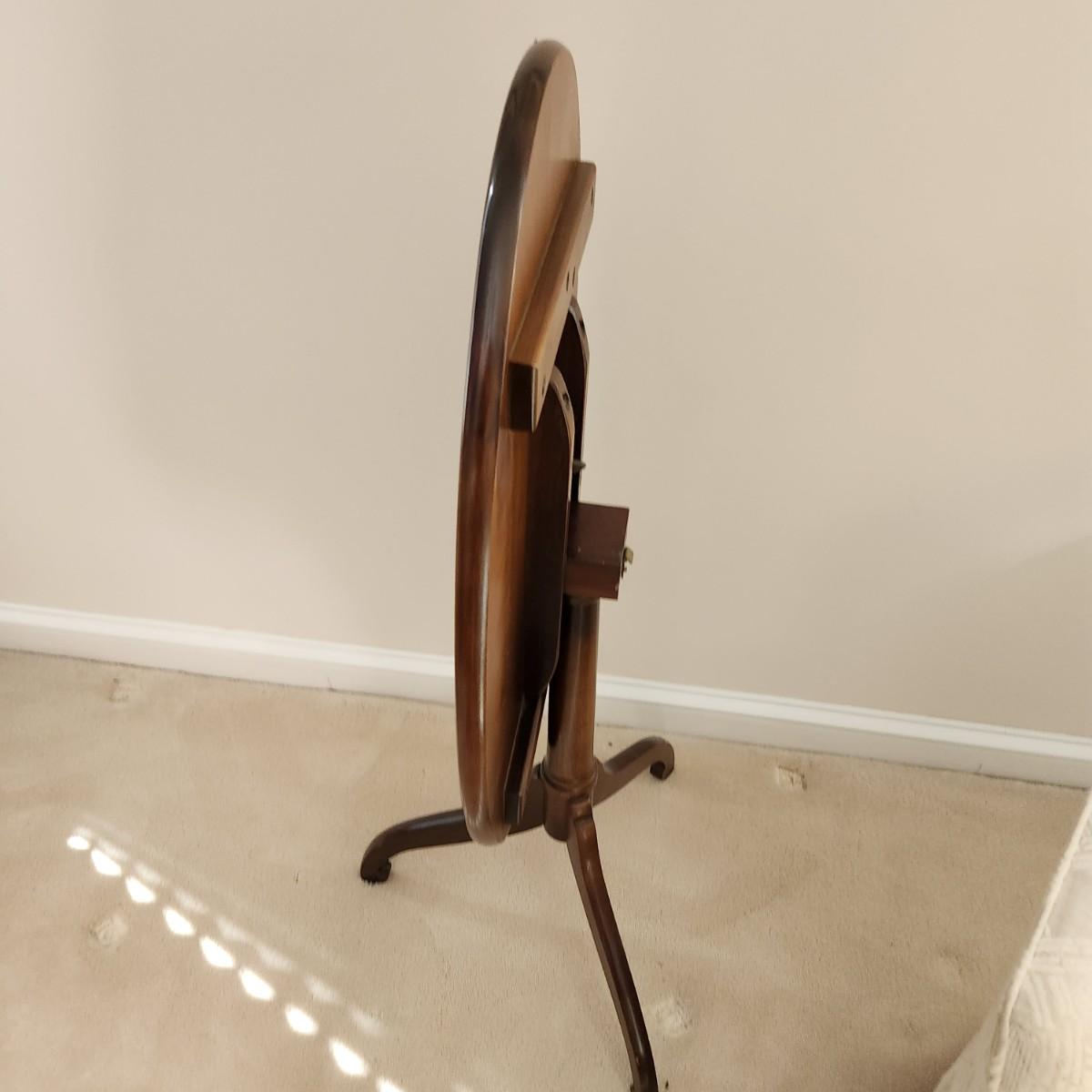 VINTAGE SOLID WOOD TILT TOP OVAL SIDE ACCENT TABLE  INLAID EAGLE