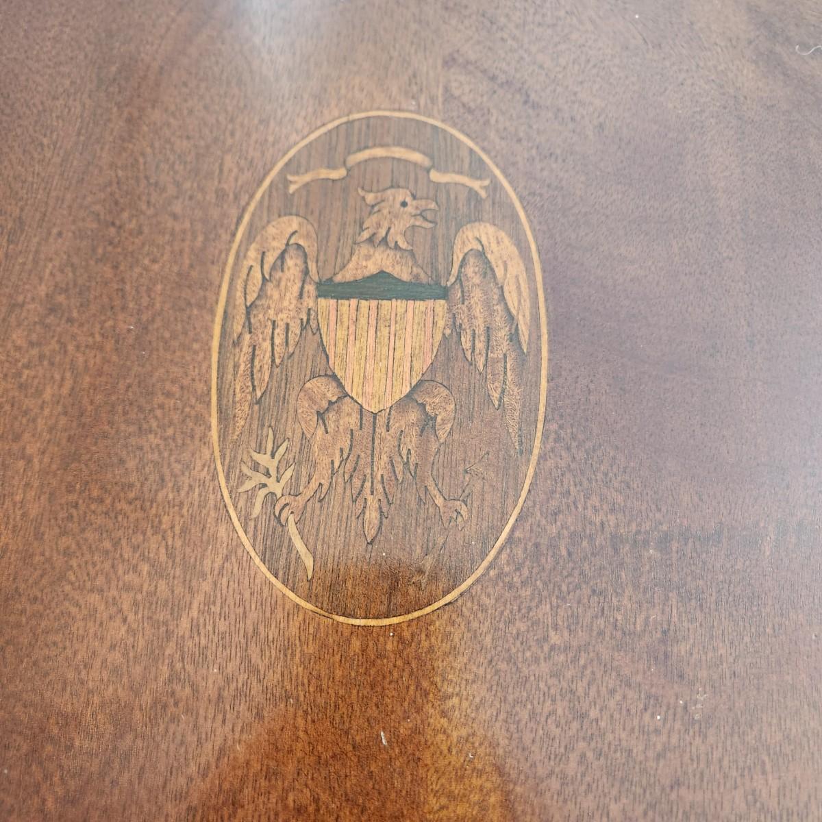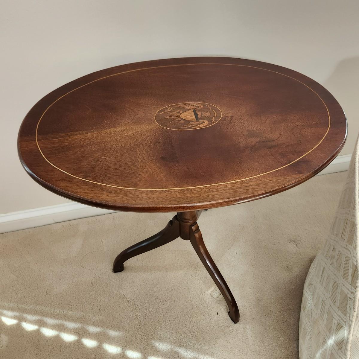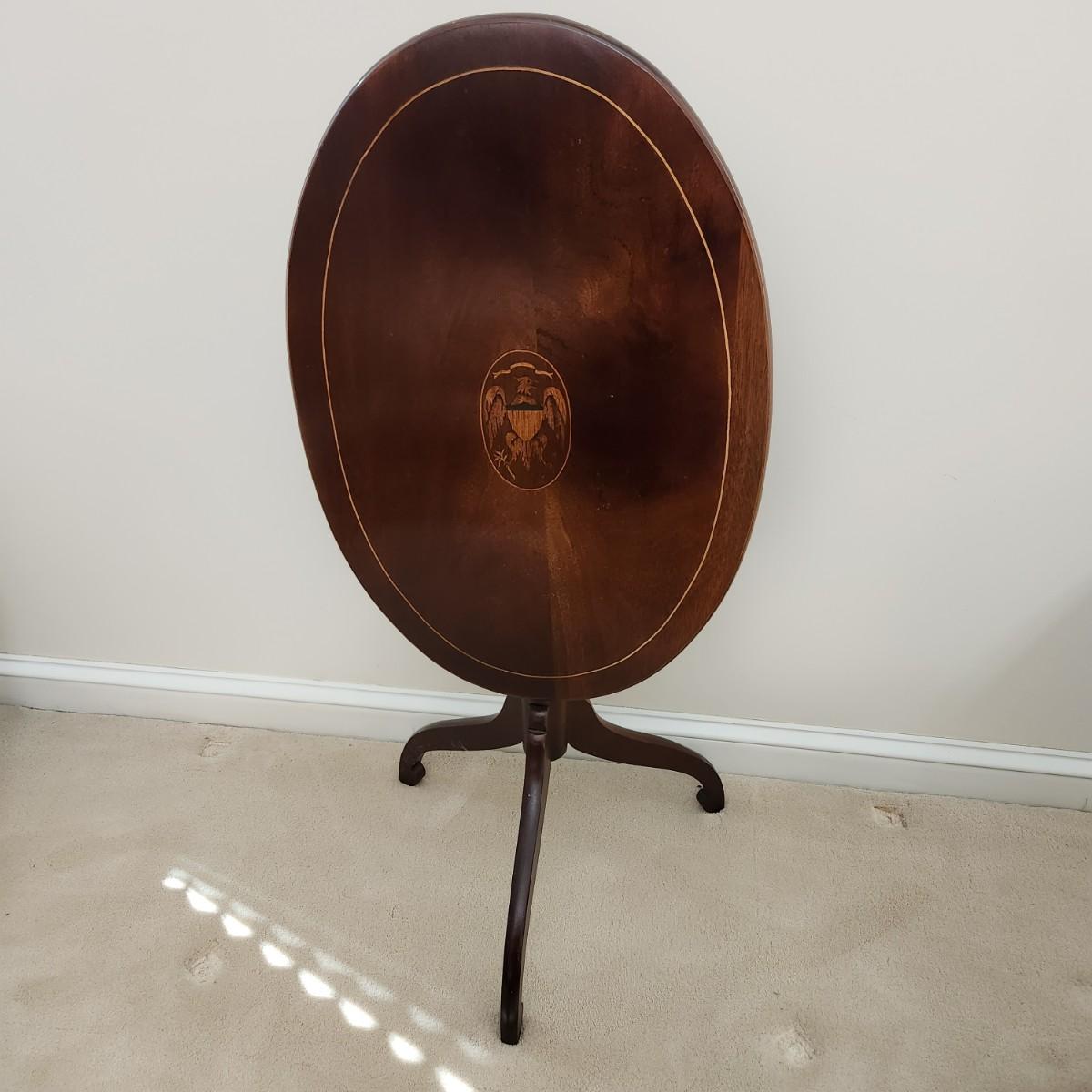 VINTAGE SOLID WOOD TILT TOP OVAL SIDE ACCENT TABLE INLAID EAGLE