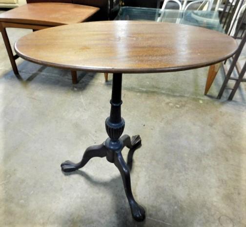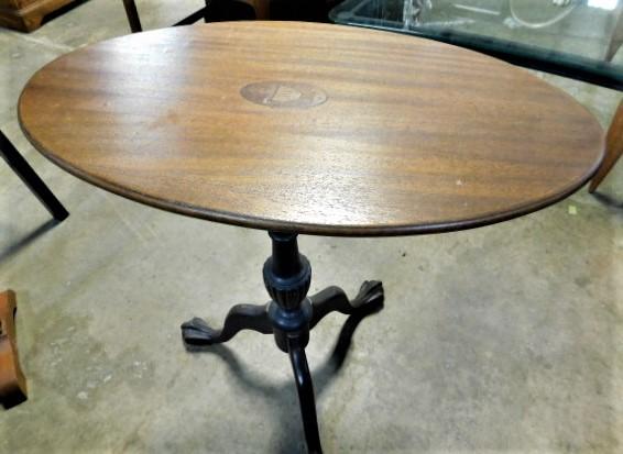 Vintage Solid Wood Tilt-Top Table with Urn Emblem