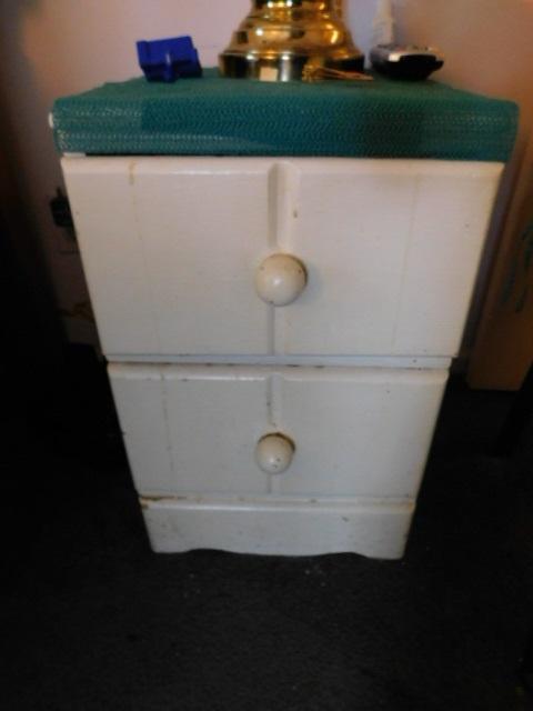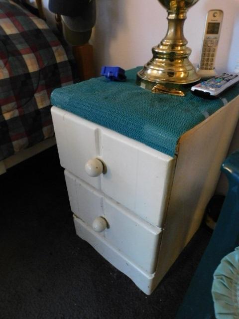 Vintage Solid Wood Two Drawer Dresser has some finish issues