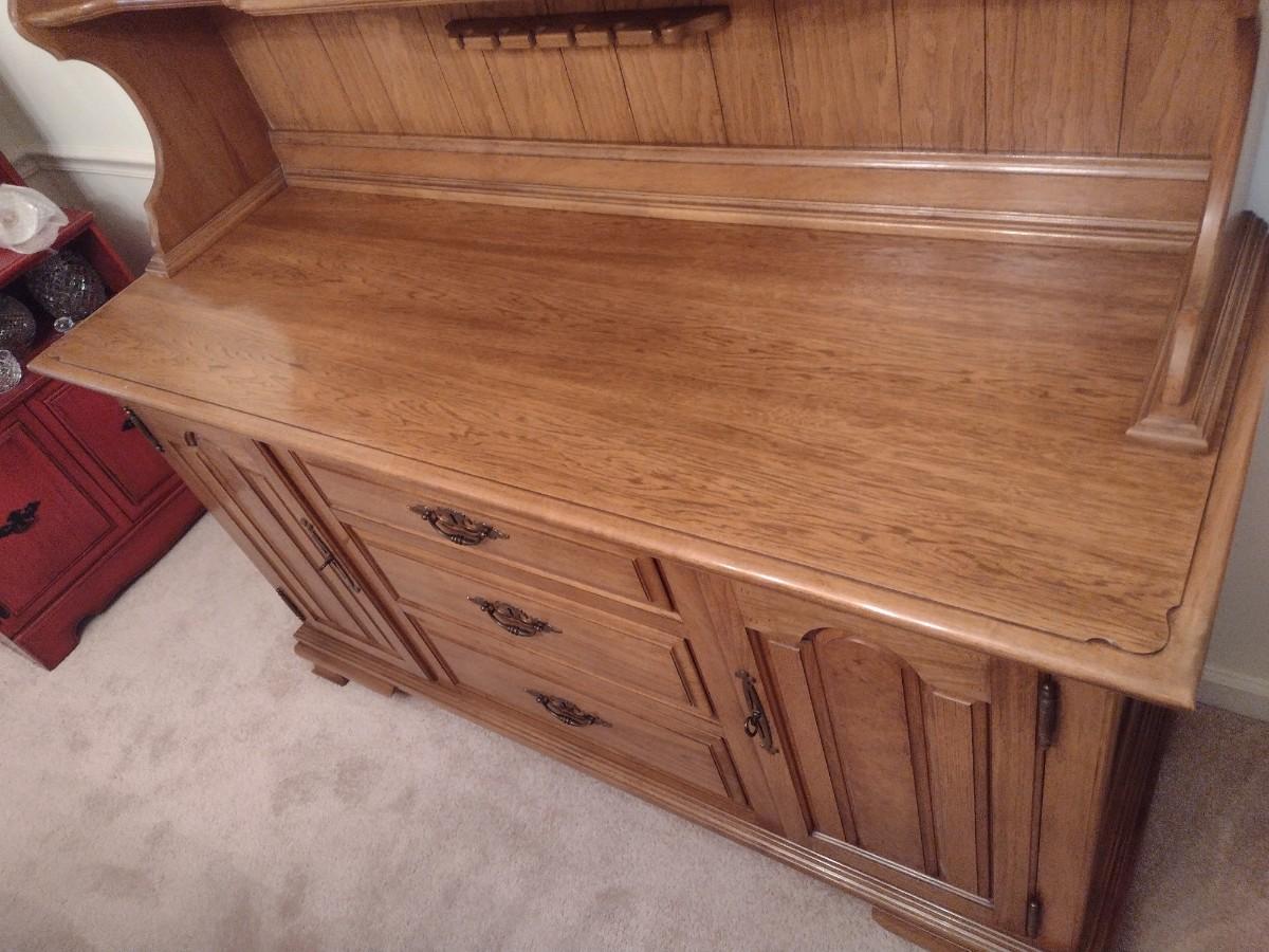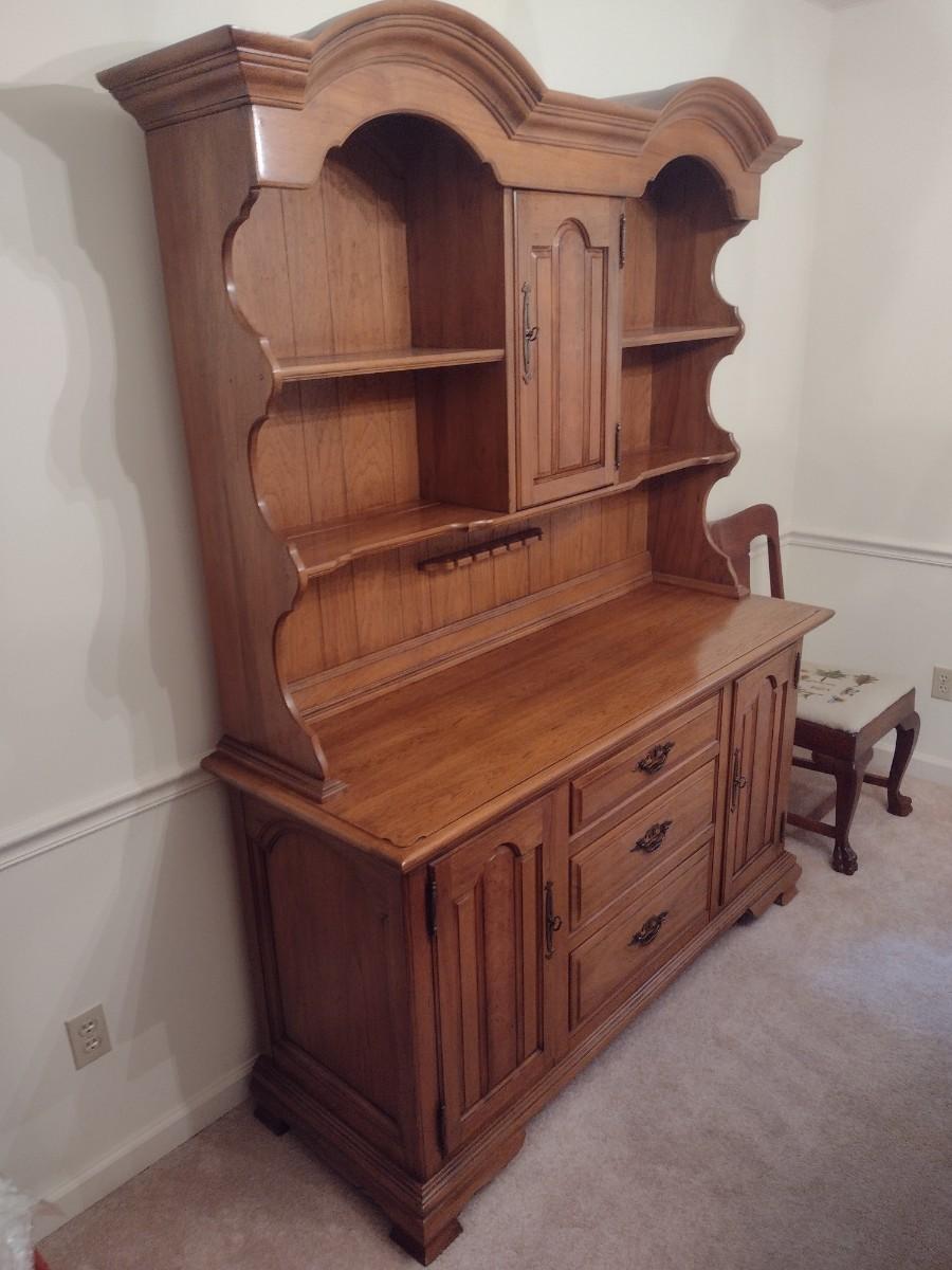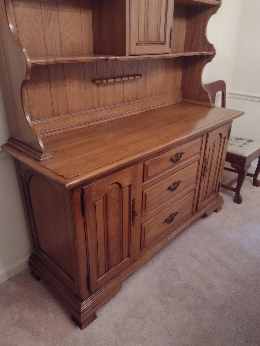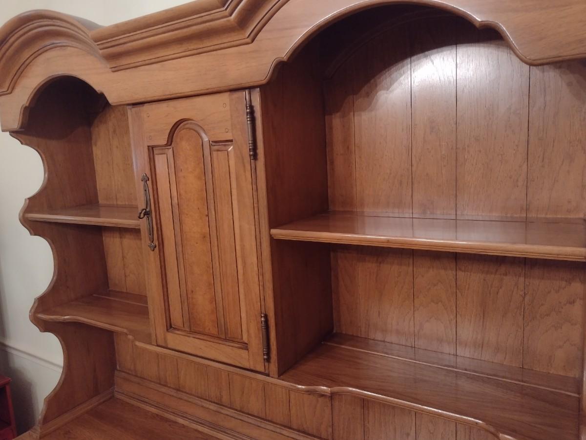 Vintage Solid Wood Two Piece Century Cabinet and Hutch