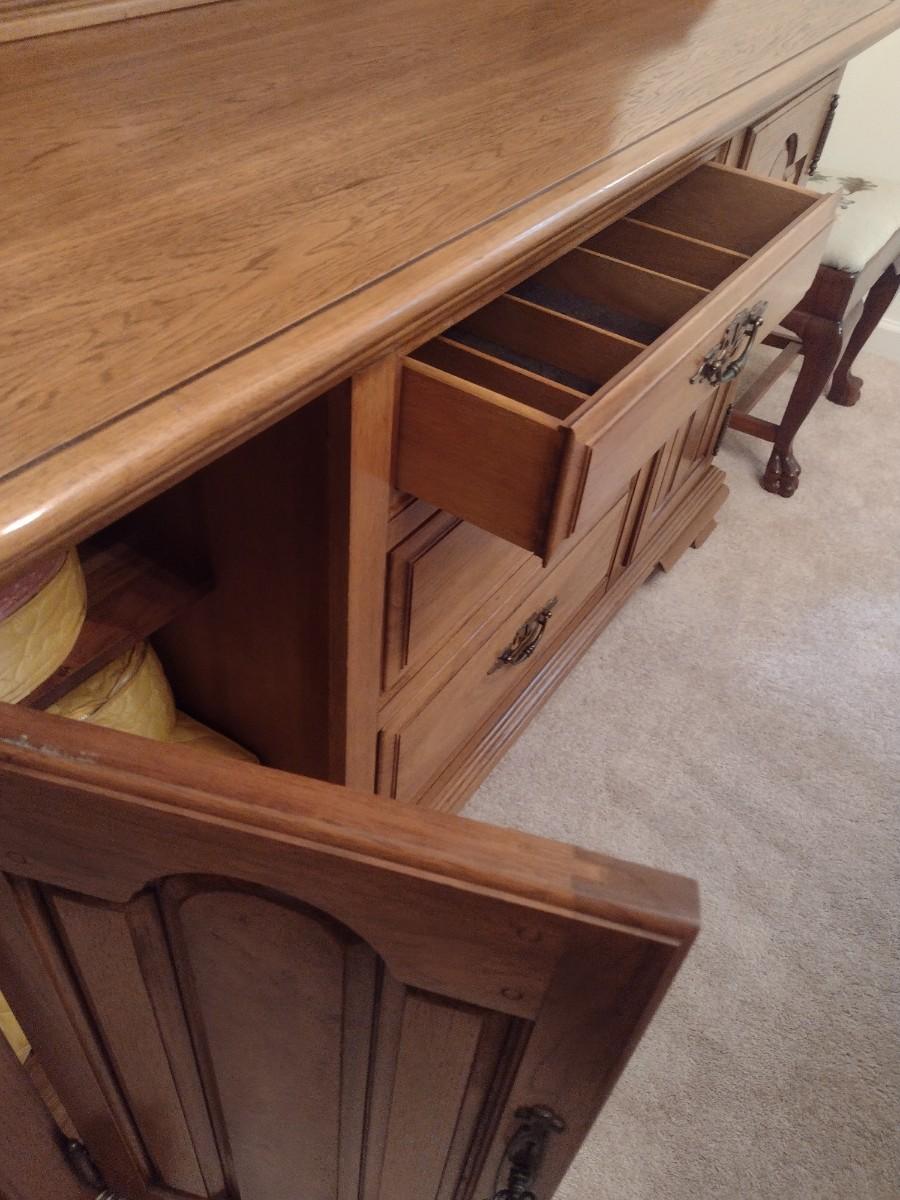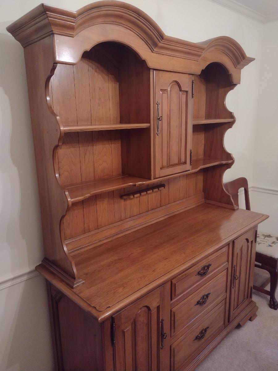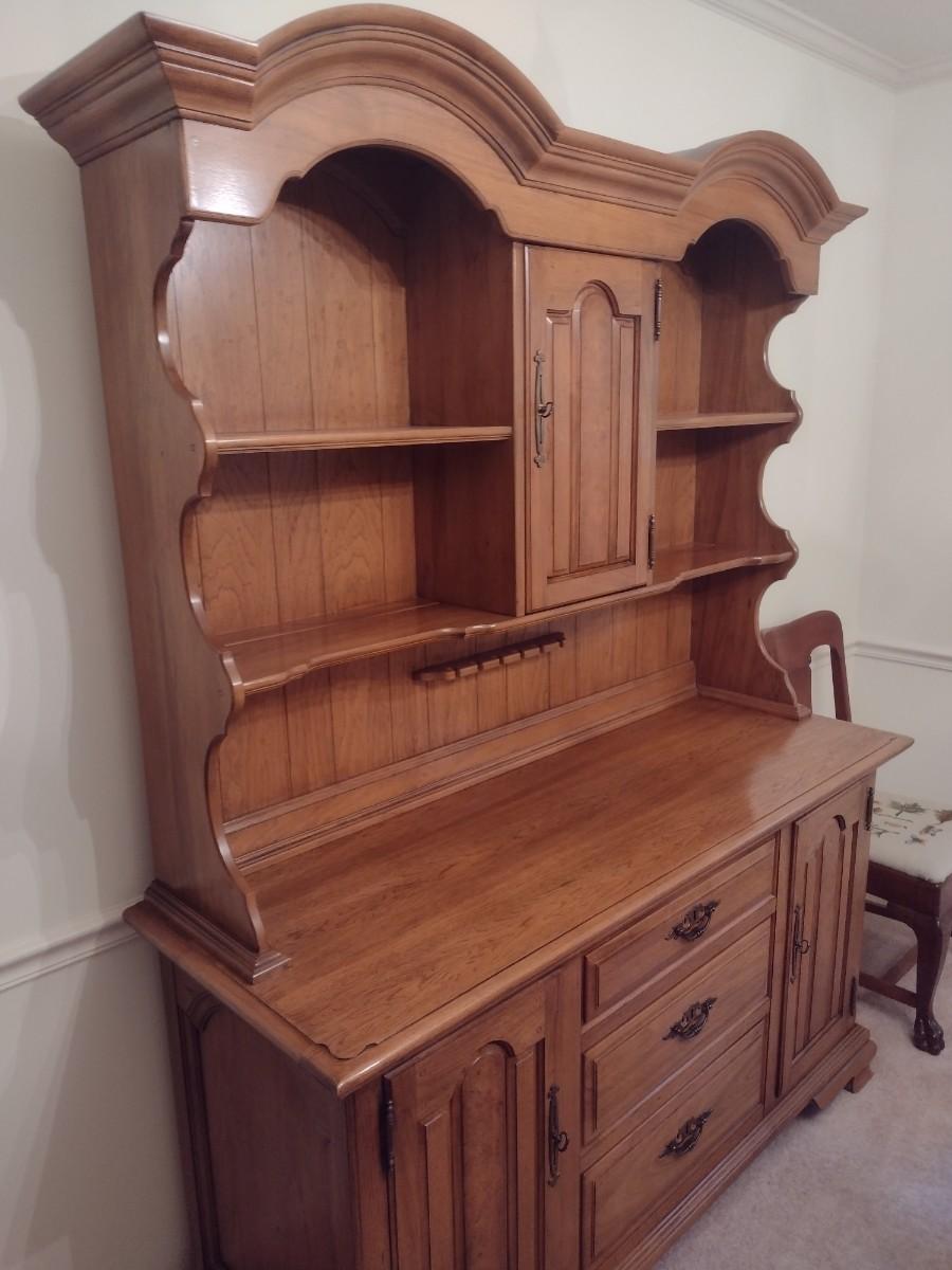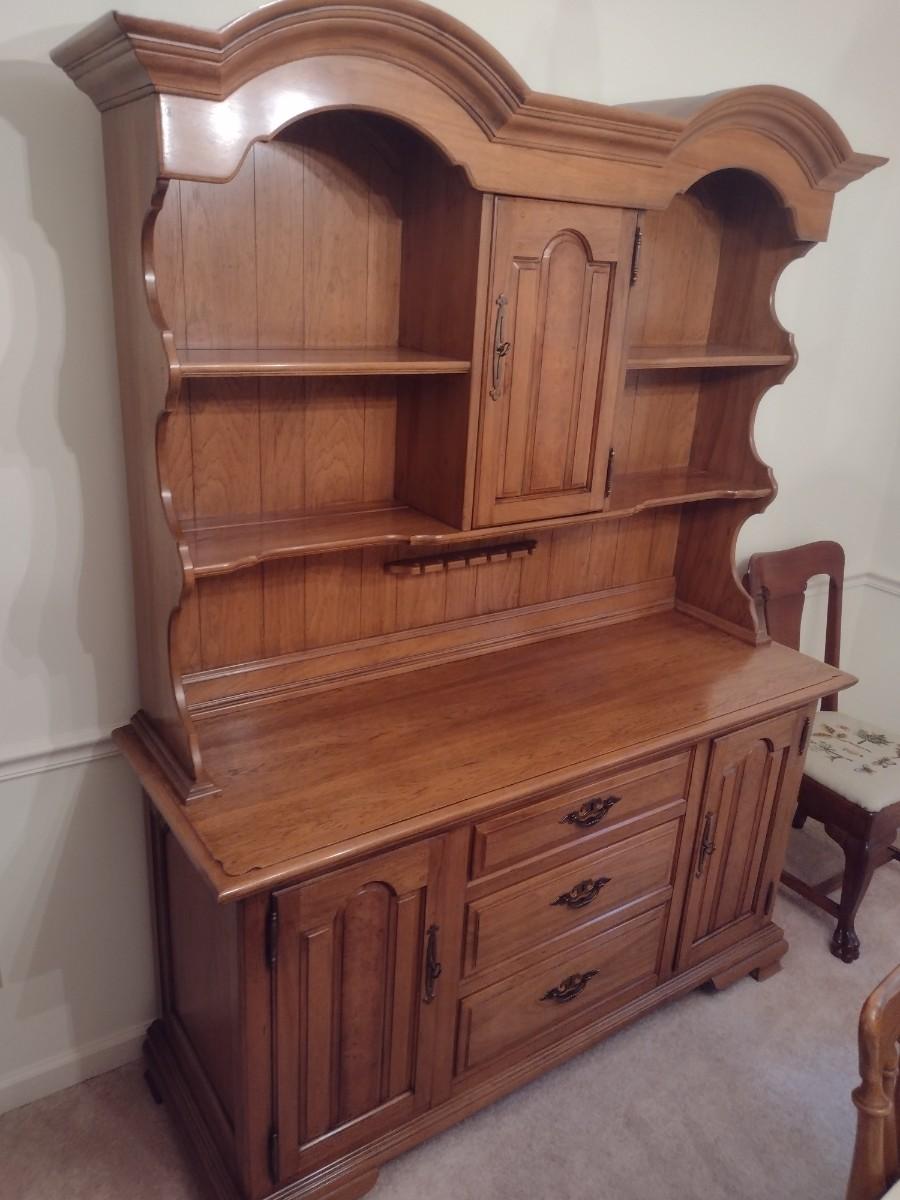 Vintage Solid Wood Two Piece Century Cabinet and Hutch