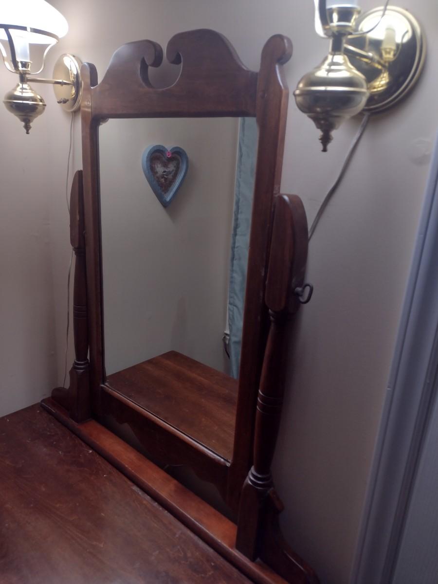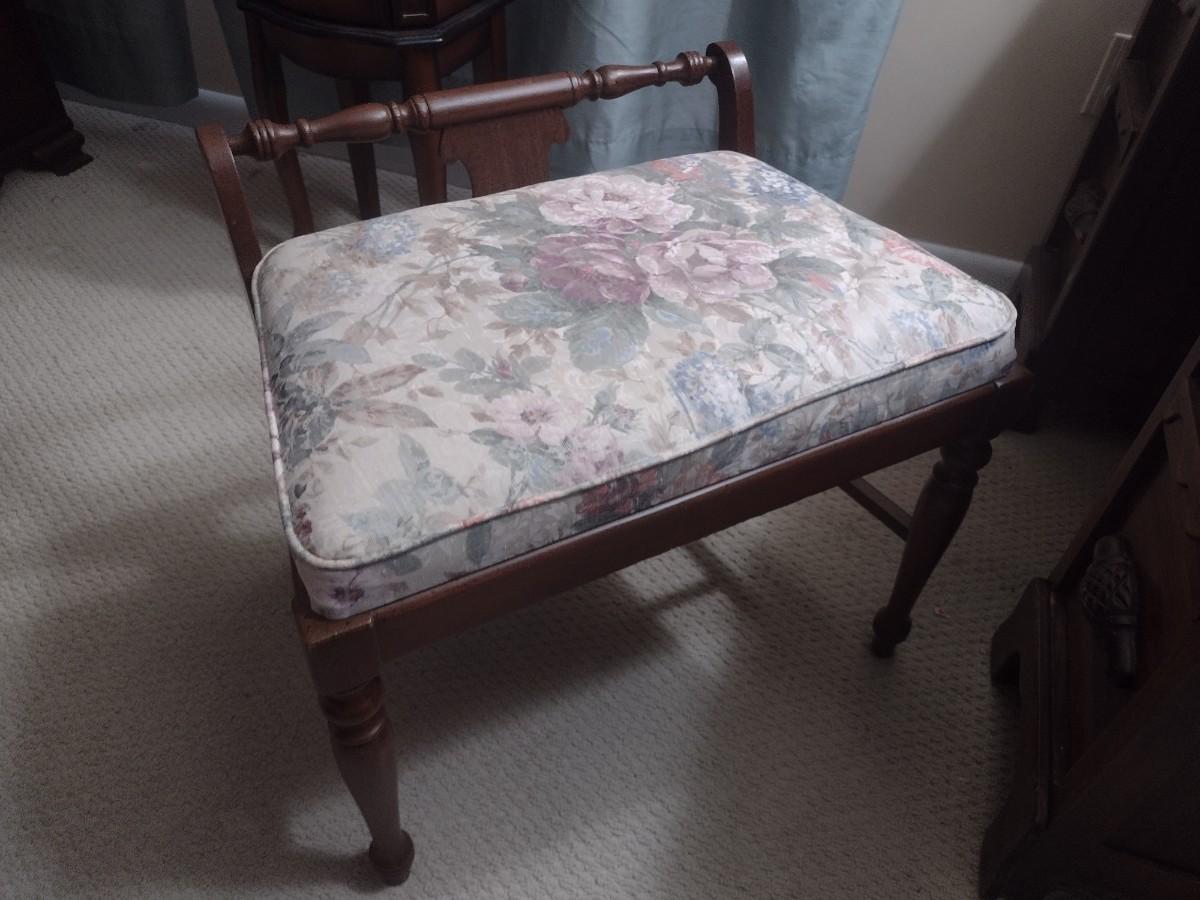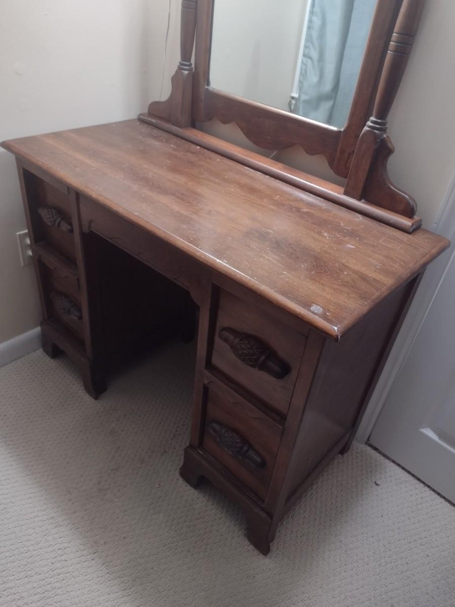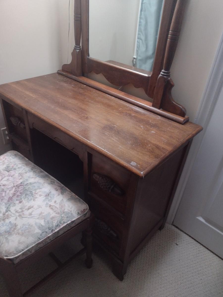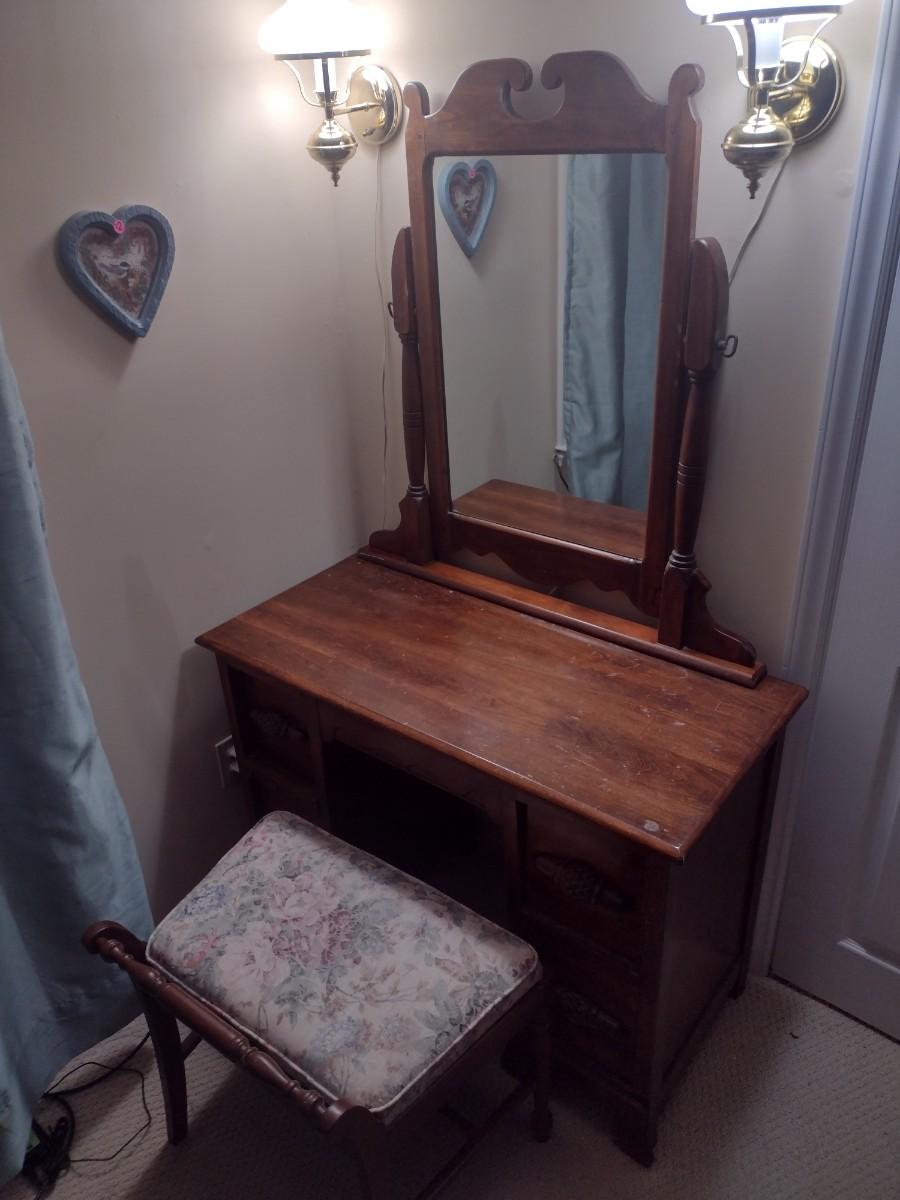 Vintage Solid Wood Vanity with Mirror and Bench