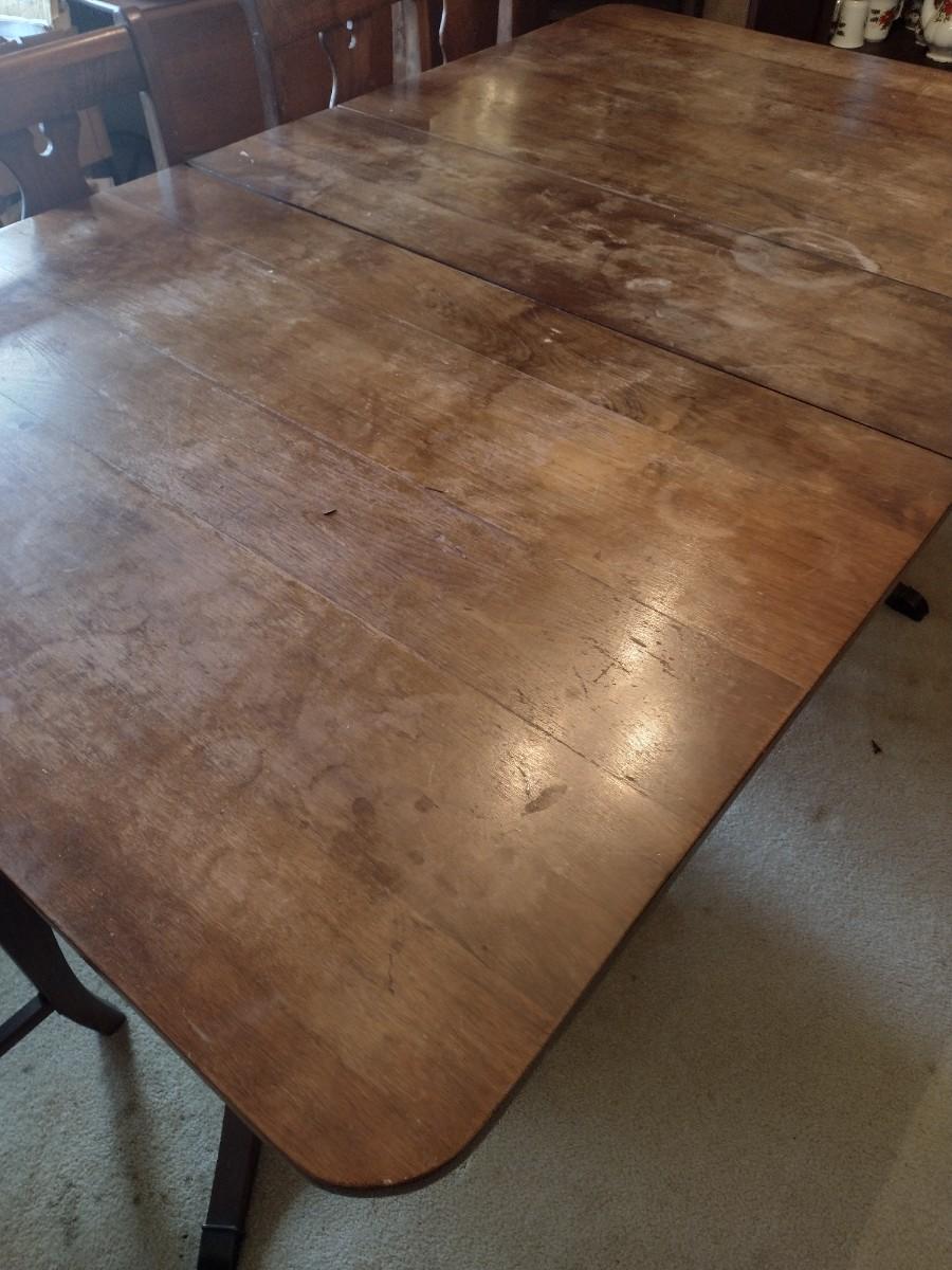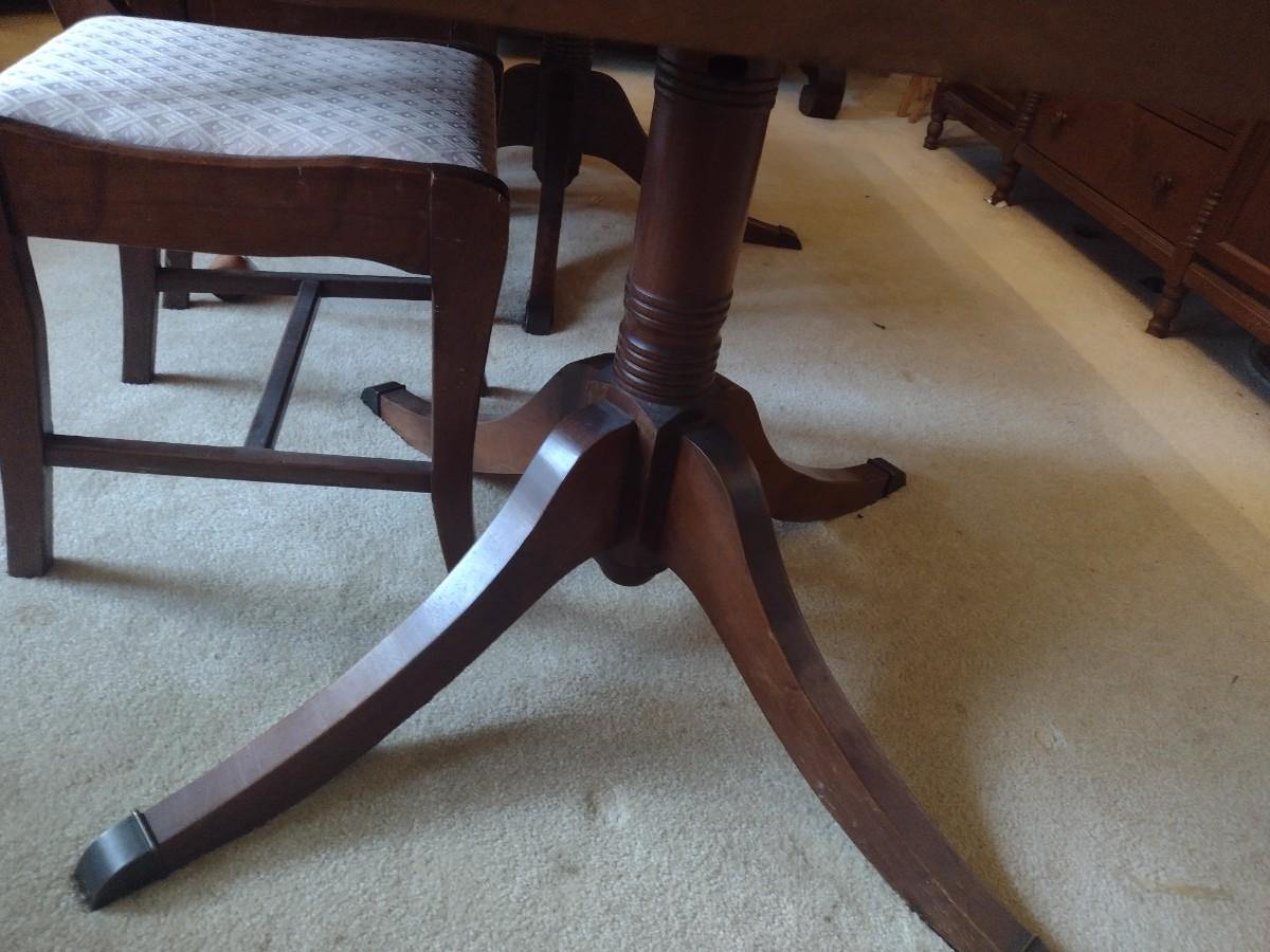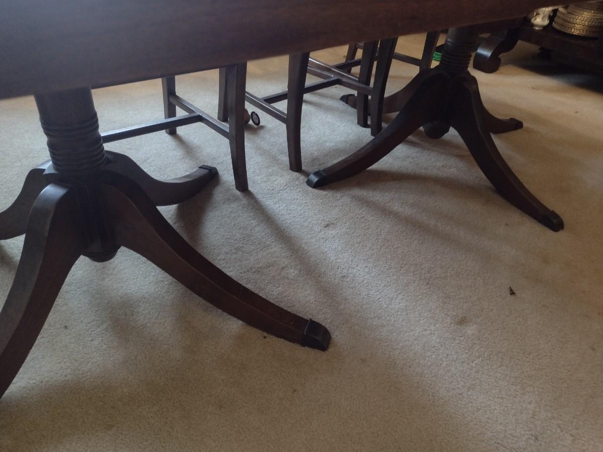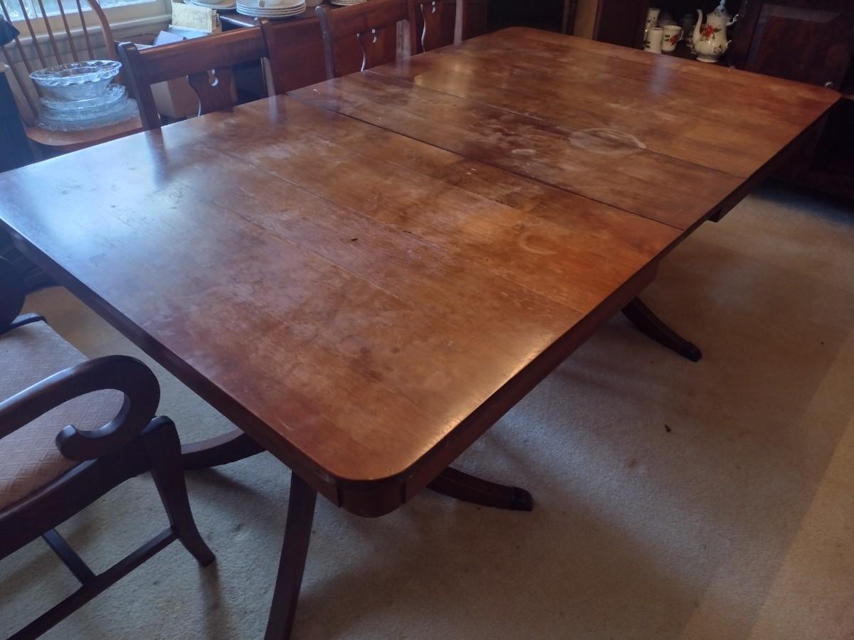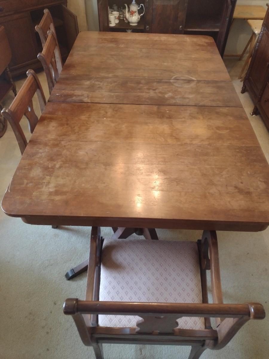Vintage Solid Wood Walnut Dining Table with Six Matching Chairs Two are Carver's Chairs