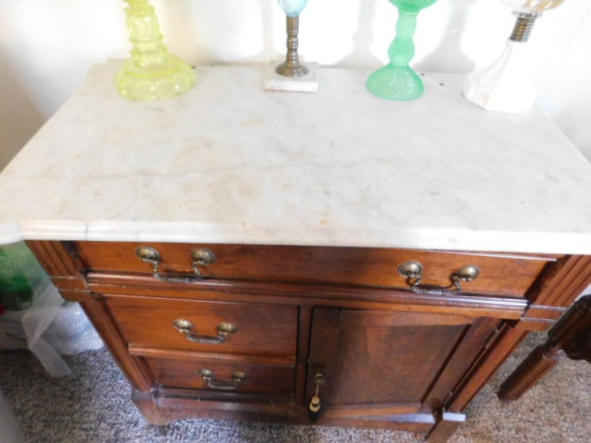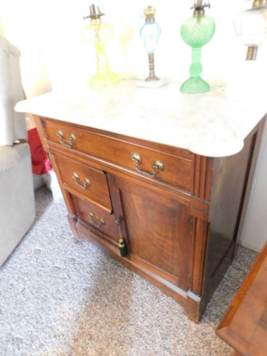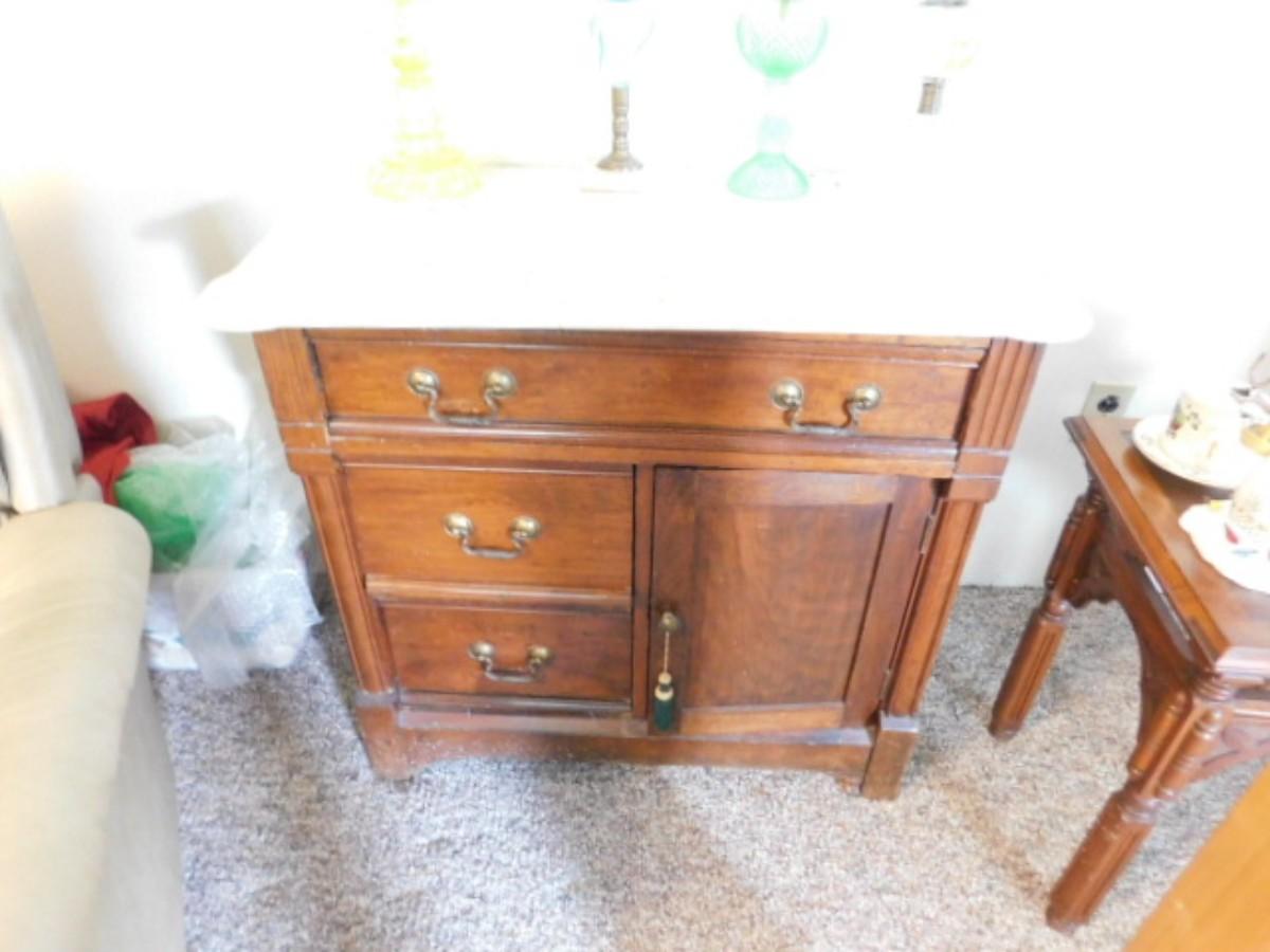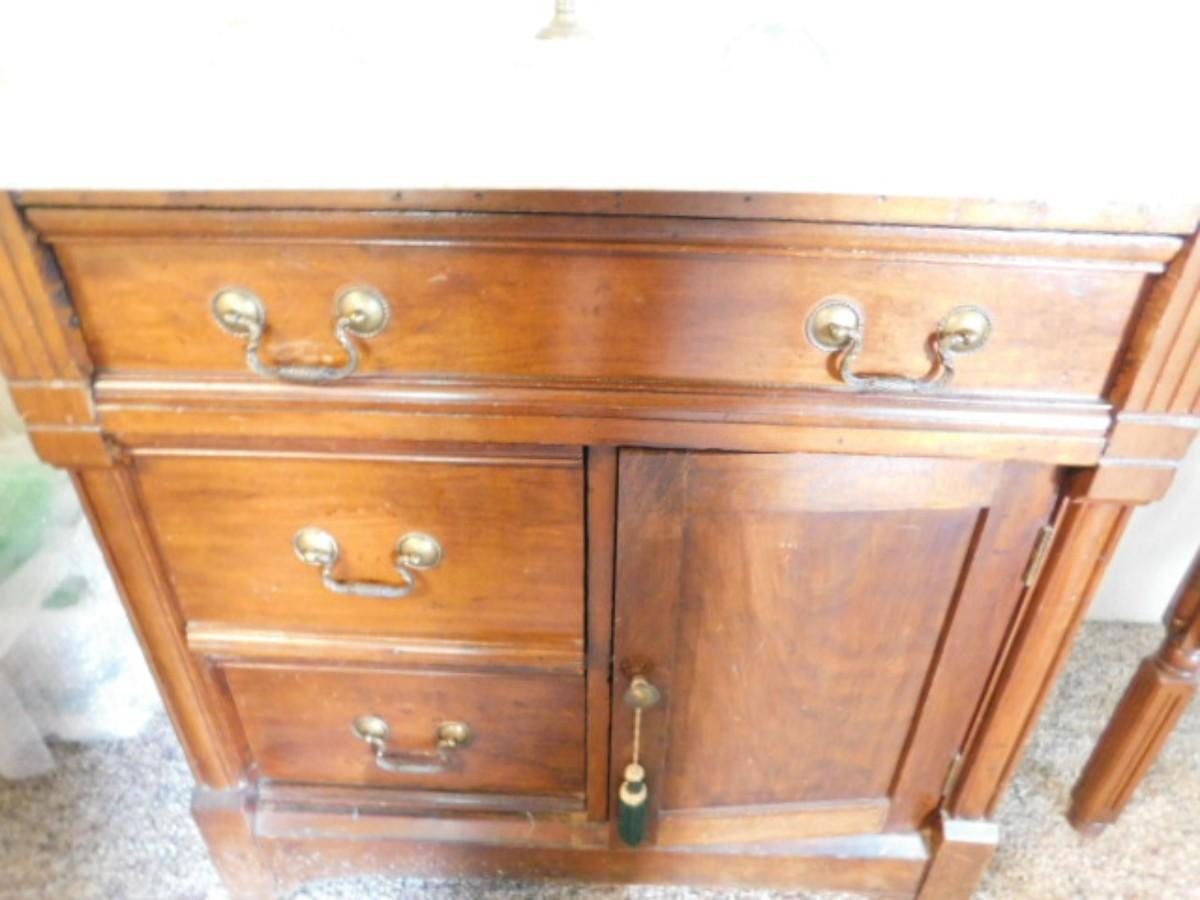 Vintage Solid Wood Walnut Washstand with Marble Top