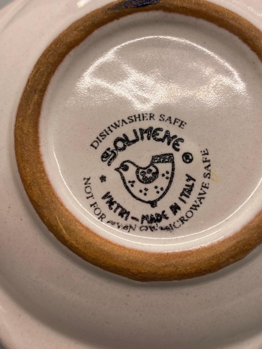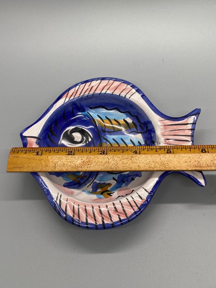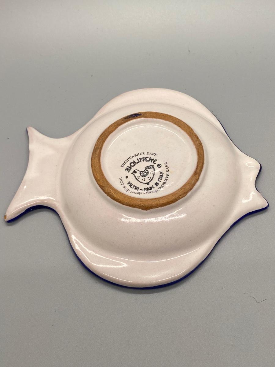 Vintage Solimene Vietri Made in Italy Pin Dish Teabag Holder Bowl, there is no significant damage to the bowl and is in good displayable condition. Check pictures for more details and for more details and for sizing.