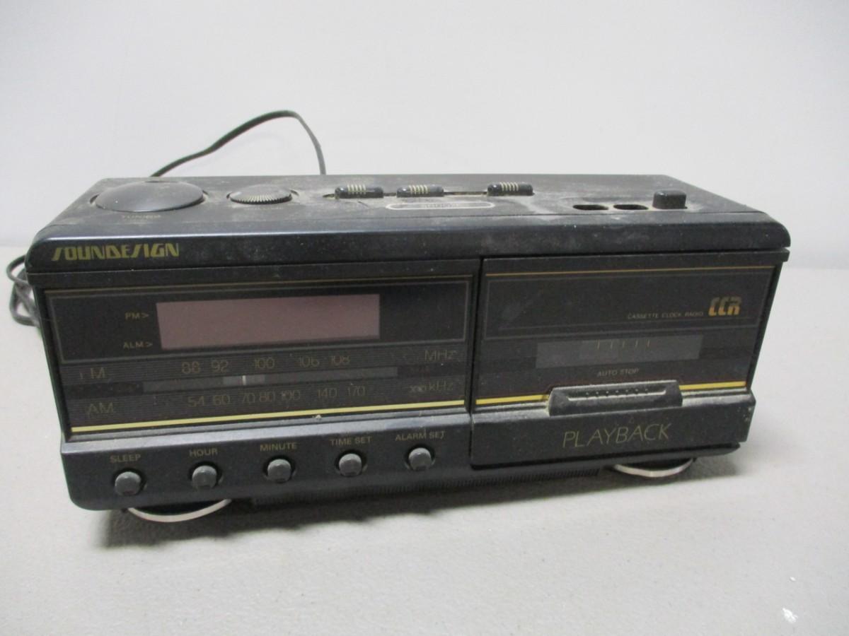 Vintage Soundesign AM/FM Electronic Clock Radio Cassette Tape Player Model 3827
