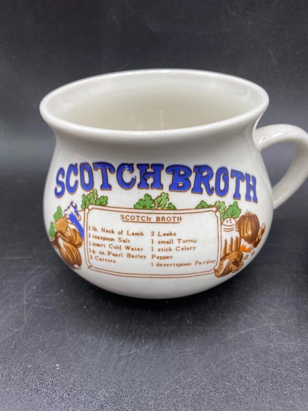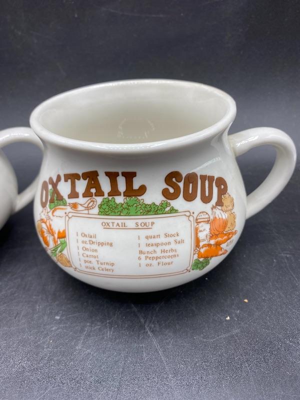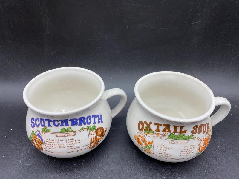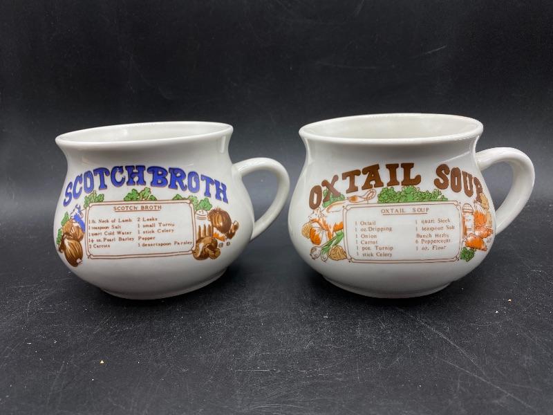 Pair of vintage soup recipe mugs. One for Scotch Broth the other for Ox Tail Soup. Great for any soup, chowder, or chili. Good vintage condition.