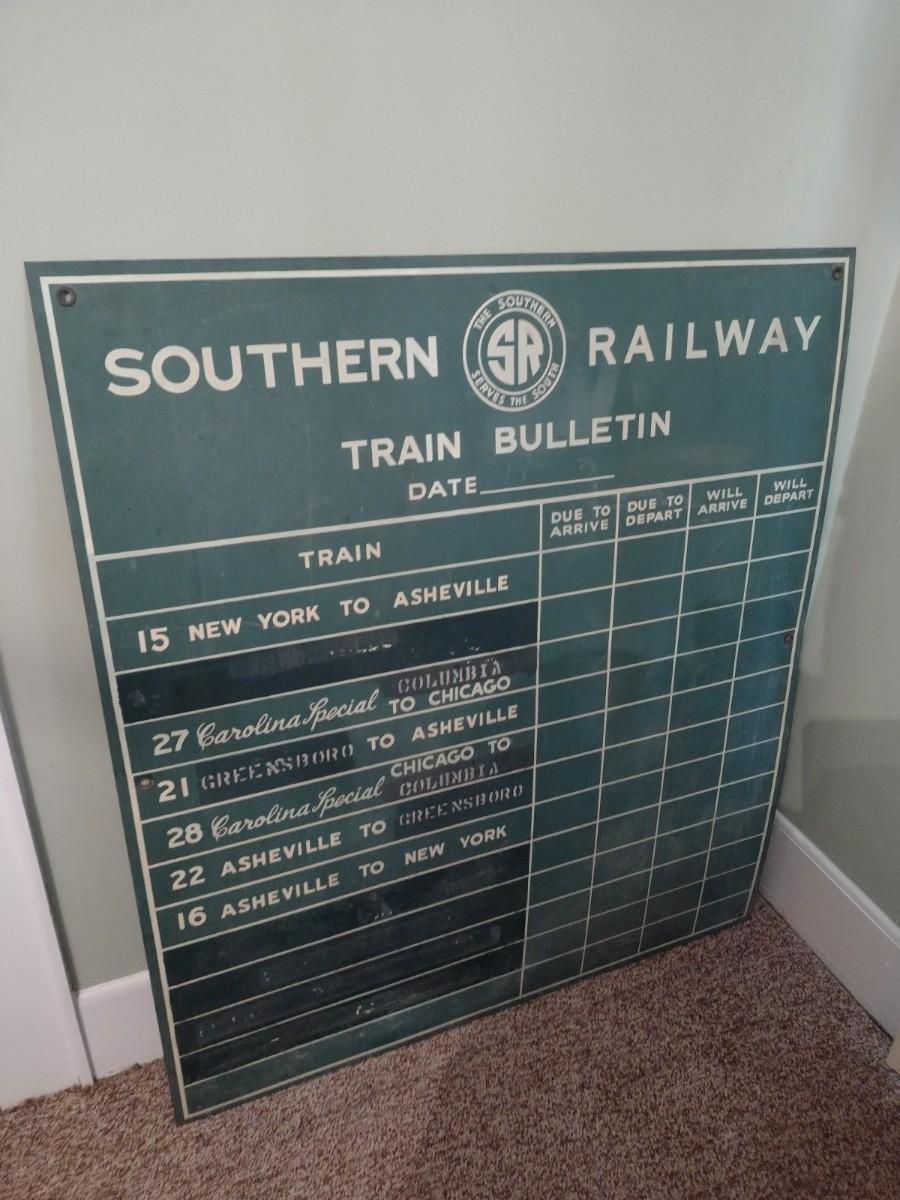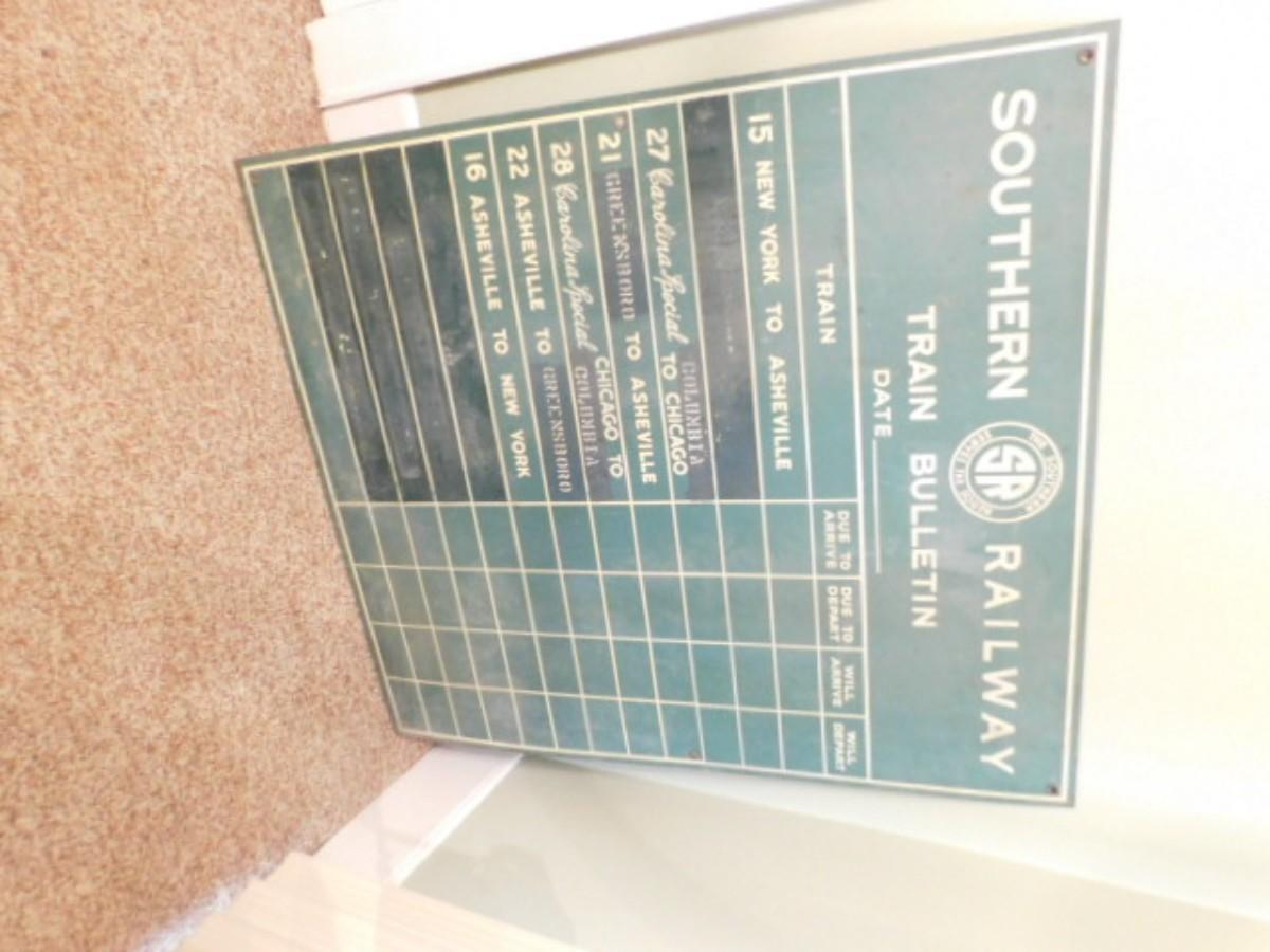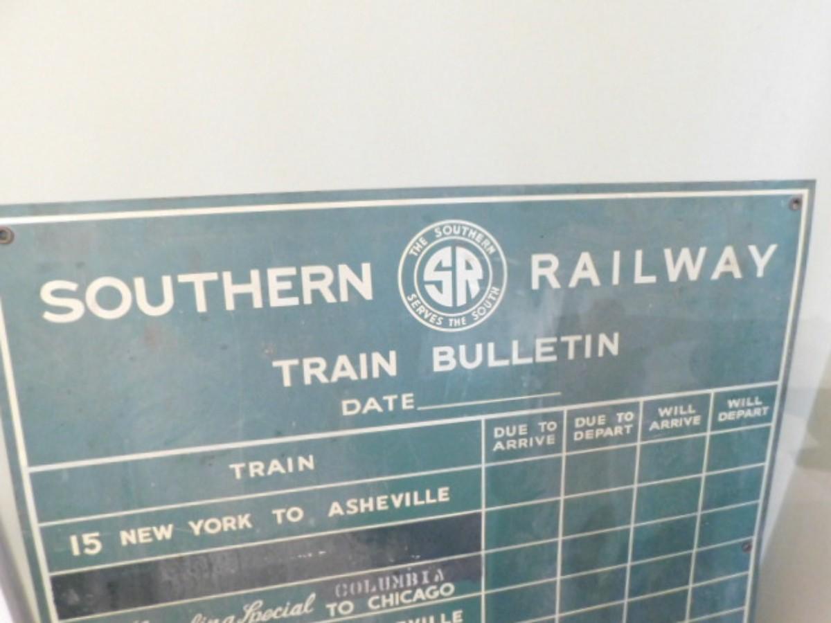 Vintage Southern Railway Metal Train Bulletin Sign Enamel Back Asheville Station