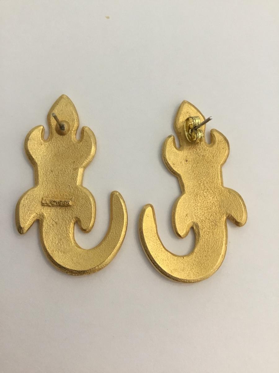 Vintage southwestern, Gago stud earrings, engraved gold collectible, signed JJ