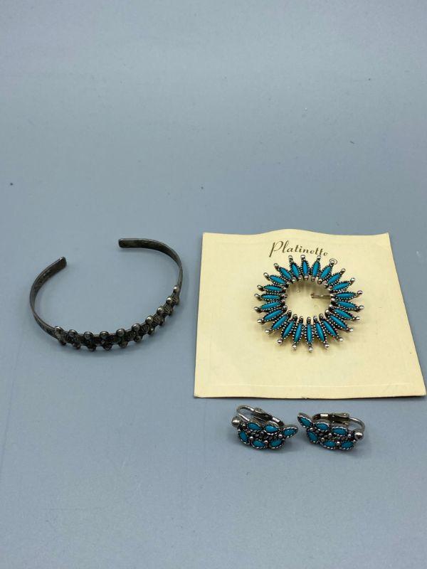 Vintage Southwestern Jewelry Set Pin, Earrings, Cuff Bracelet YD#011-1120-00122