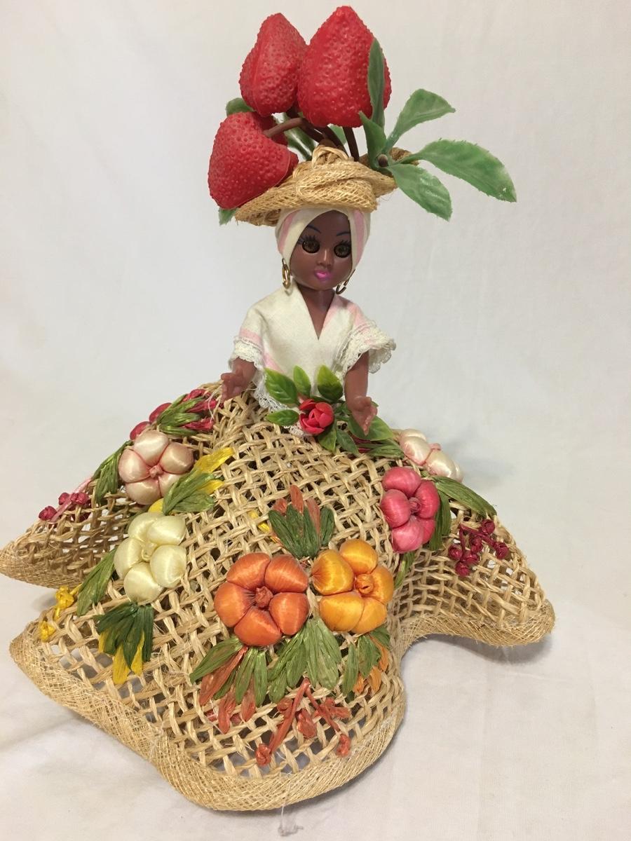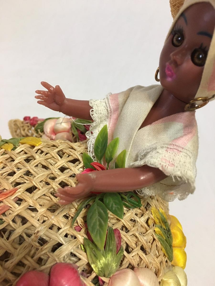 Vintage Souvenir Doll Fruit Basket Hat Wicker Dress Bahamas Sleep Eye 11 Floral