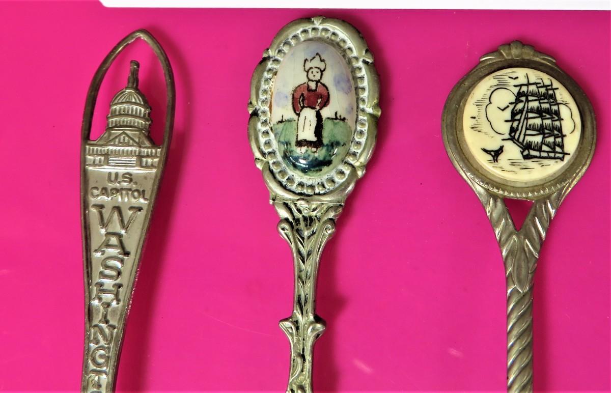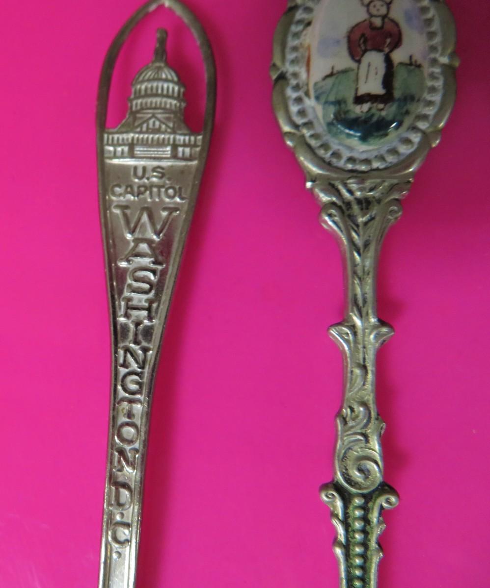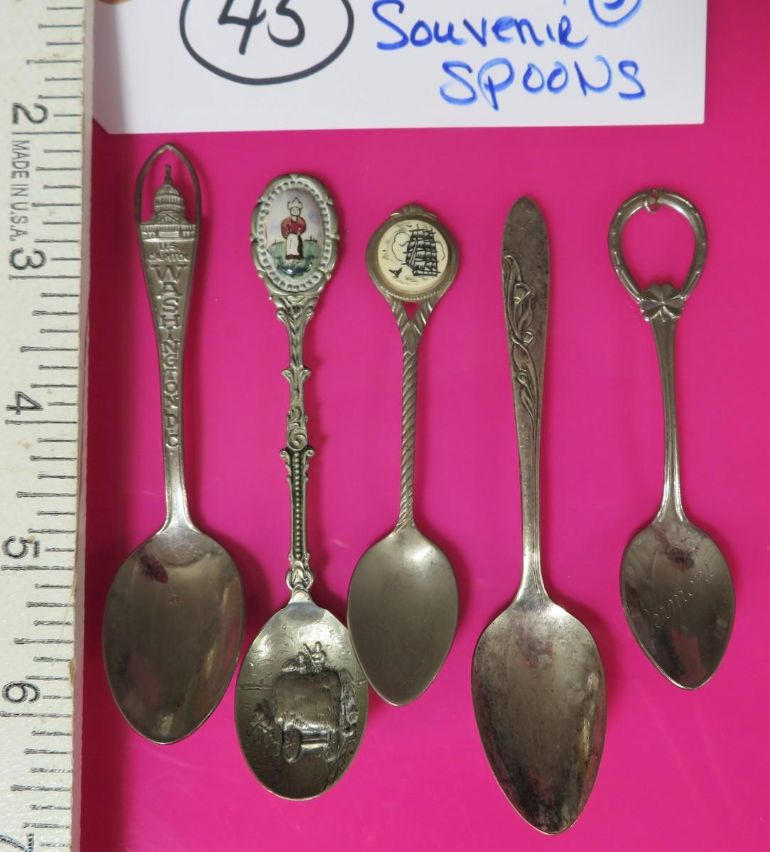 Lot of (5) Collectible Vintage Souvenir Spoons with U.S. Capital Washington D.C., Rose floral Silver plate Carlton, engraved Vermont & Colonial Horse and Wheel wagon design.