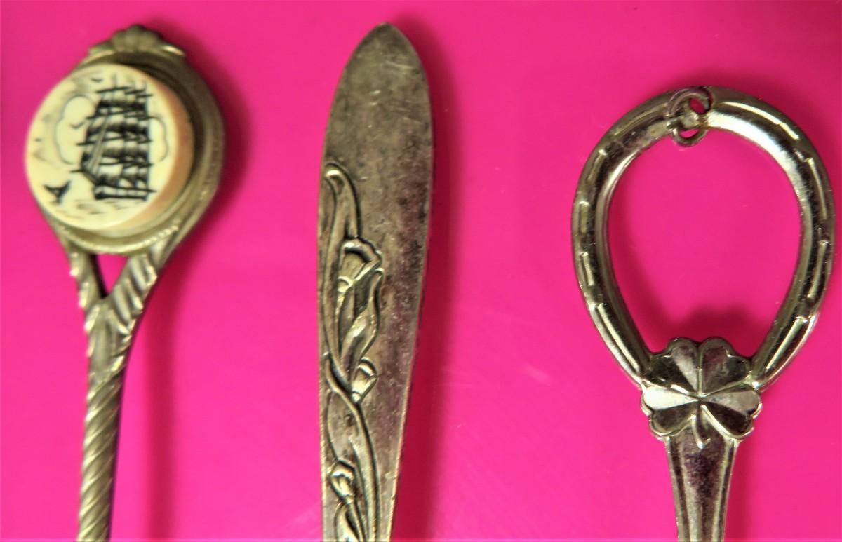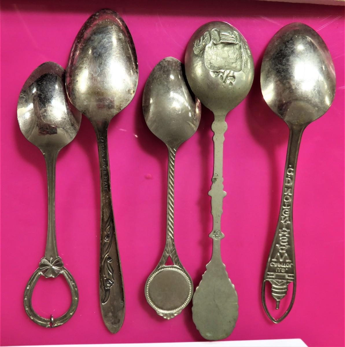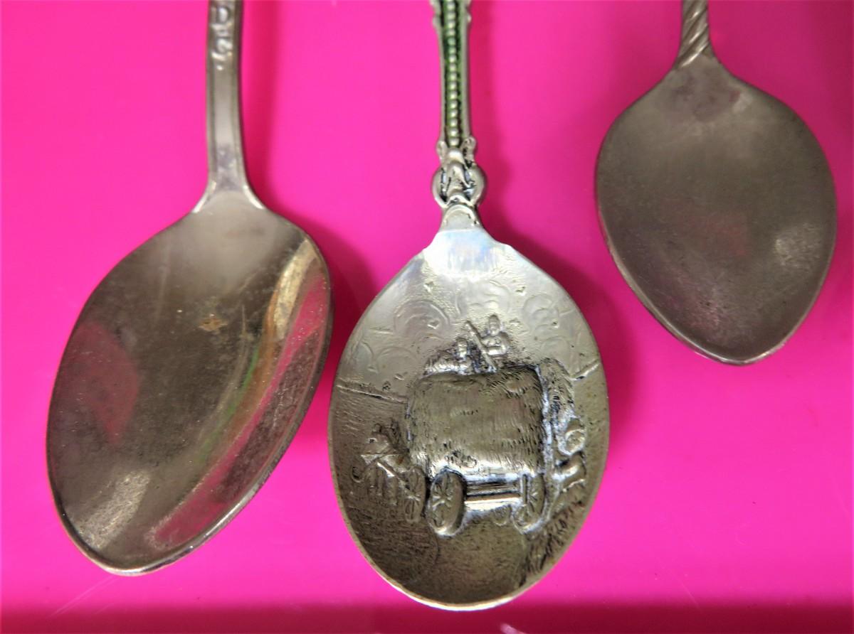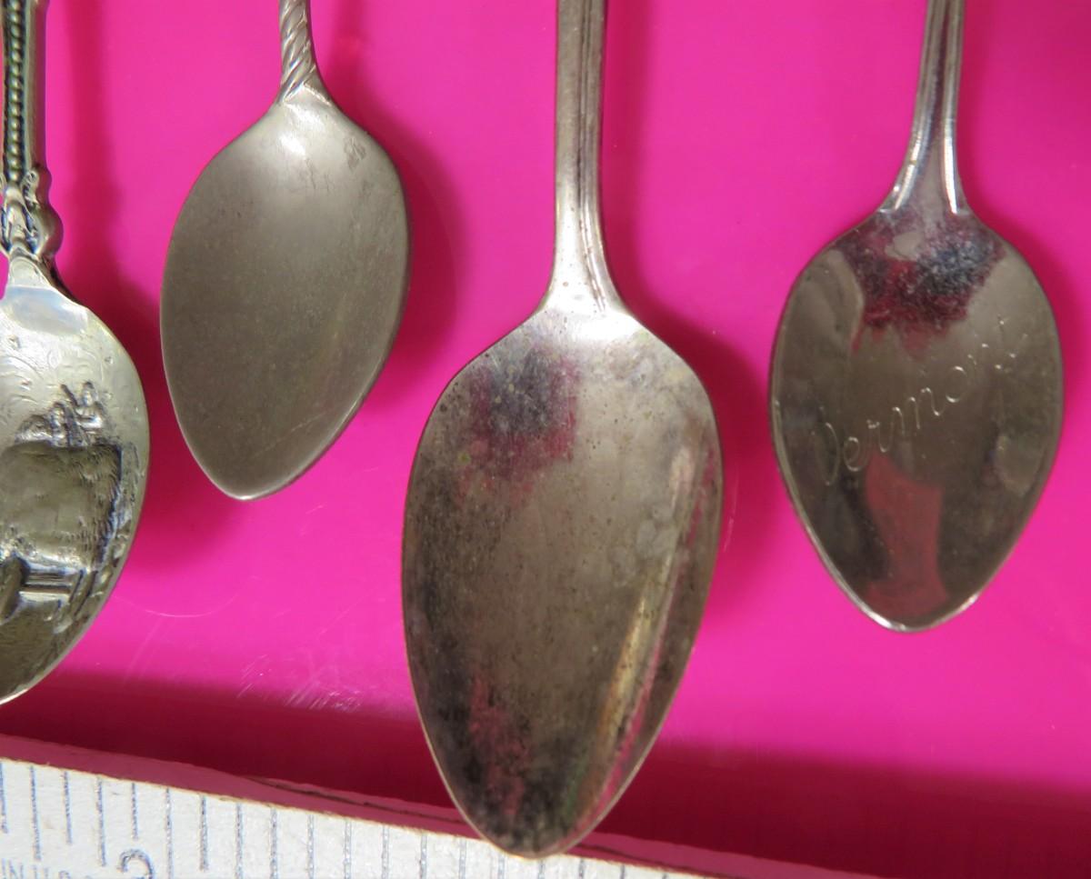 Lot of (5) Collectible Vintage Souvenir Spoons with U.S. Capital Washington D.C., Rose floral Silver plate Carlton, engraved Vermont & Colonial Horse and Wheel wagon design.