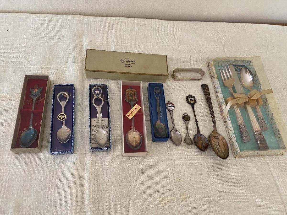 Vintage Souvenir Spoons With Silver Gorham napkin ring