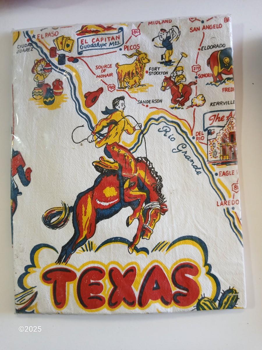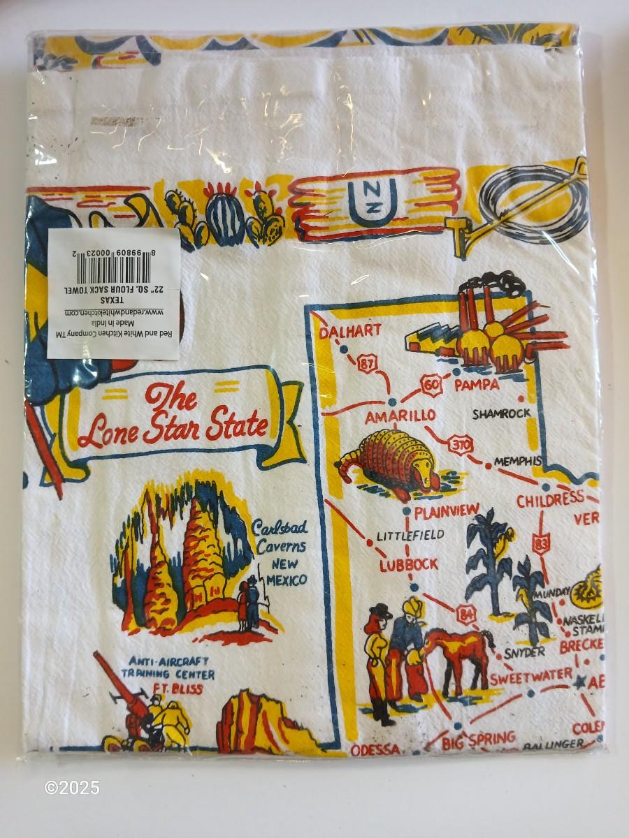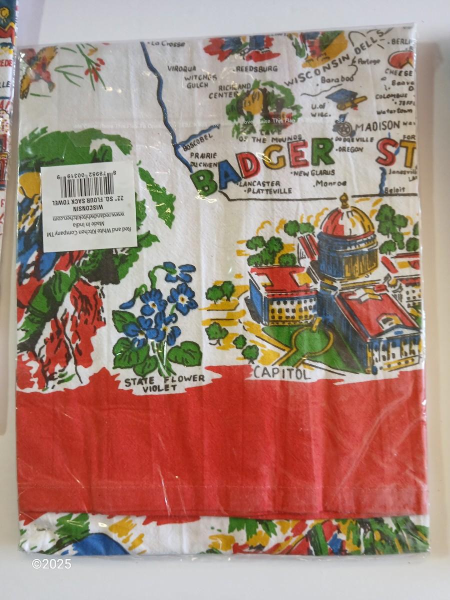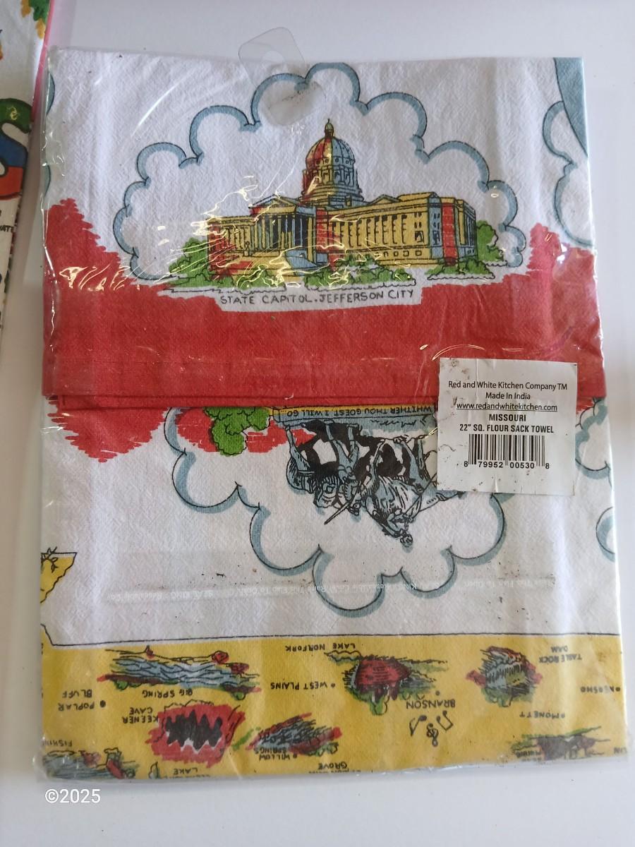 Colorful and nostalgic collection of vintage souvenir textiles featuring vibrant illustrated maps of U.S. states! Includes: