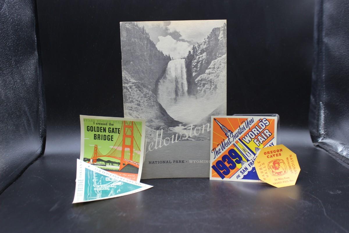 Vintage Souvenir Stickers and Yellowstone Booklet. Stickers are dated 1930s, but they look newer.