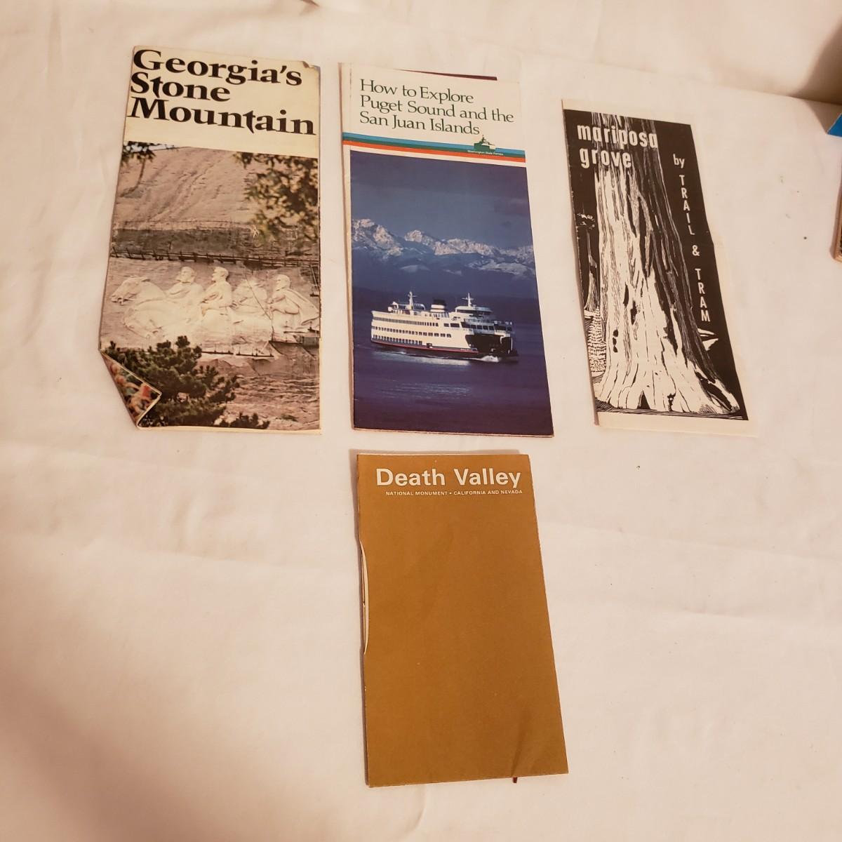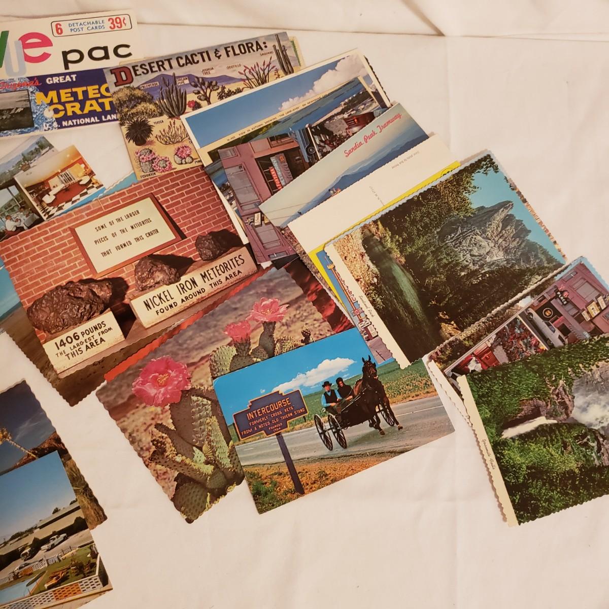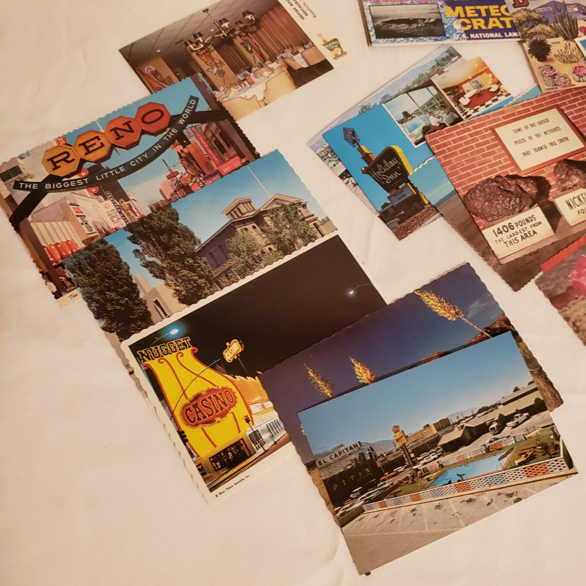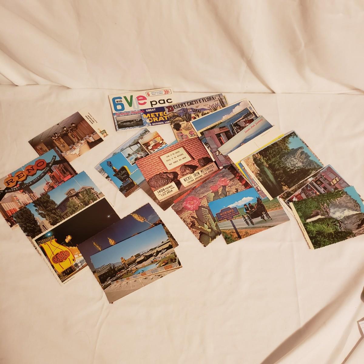 This plethora of vintage souvenirs almost feels like you don't have to travel! There are books from Readers Digest, to a stack of postcards, ashtrays from Las Vegas and don't forget the coffee mug from Mt. Saint Helen! The plastic Arizona platter measures 11" x 9". See pictures for so many details!