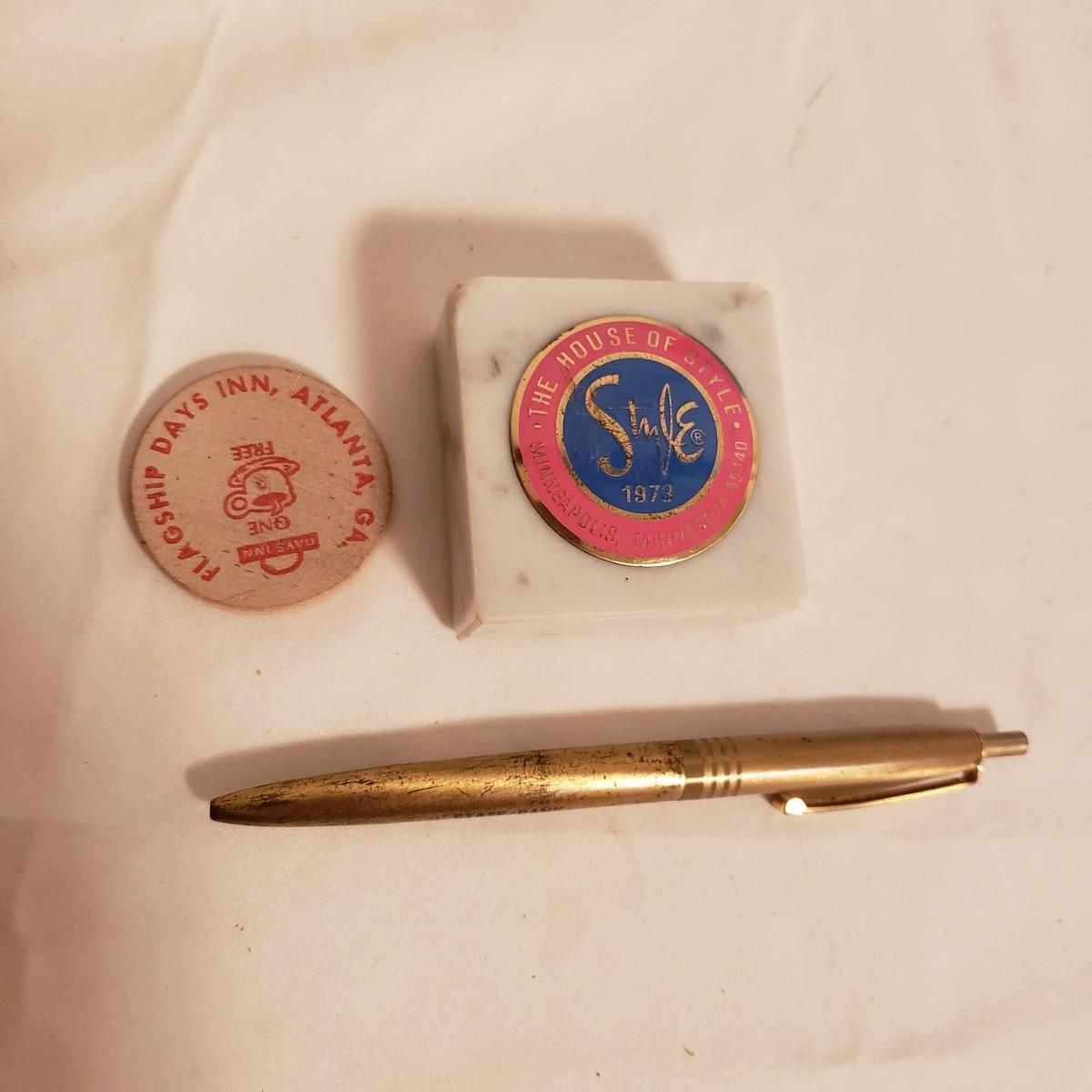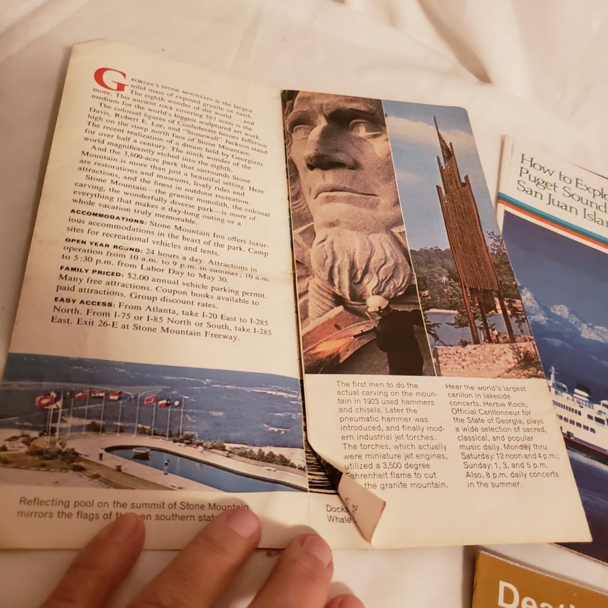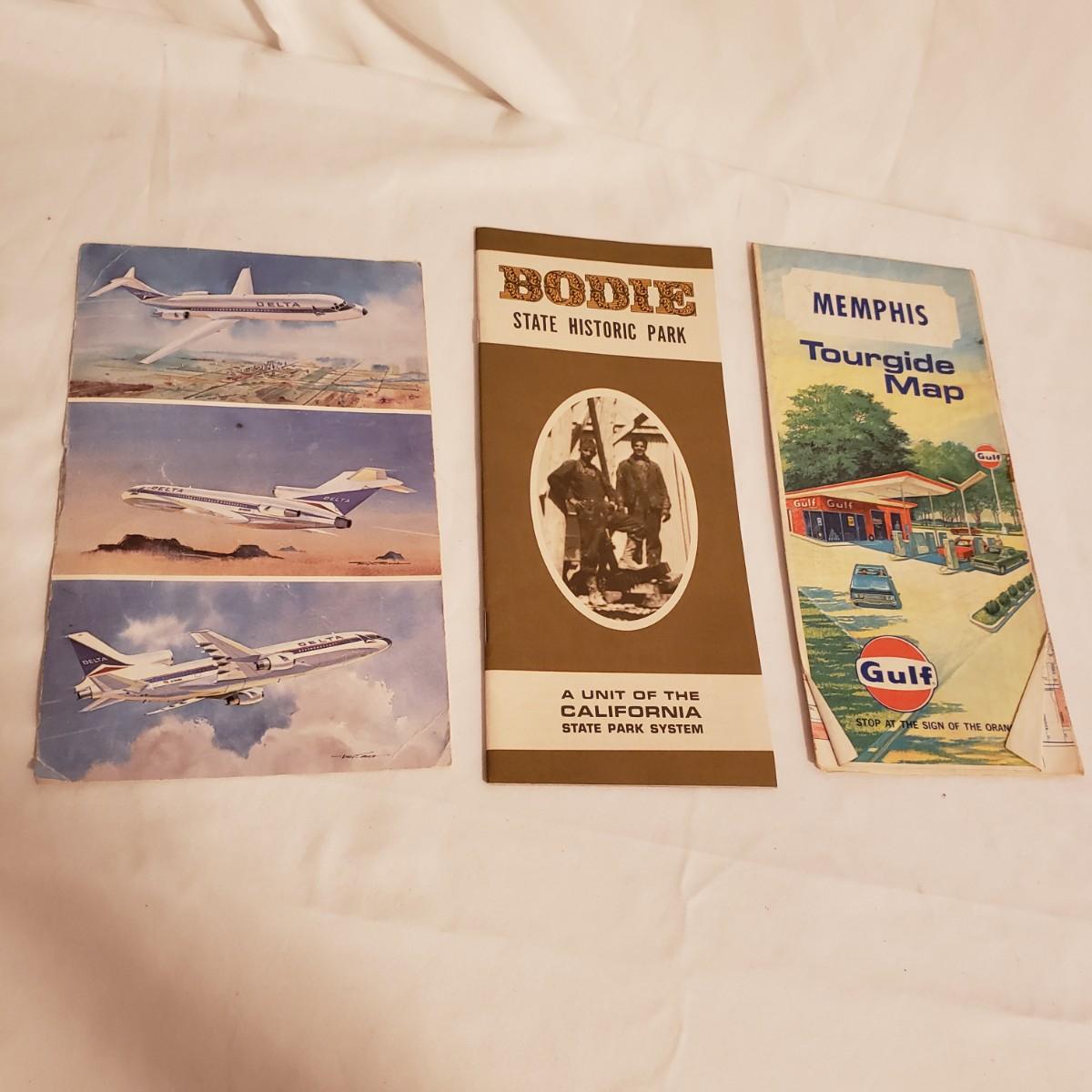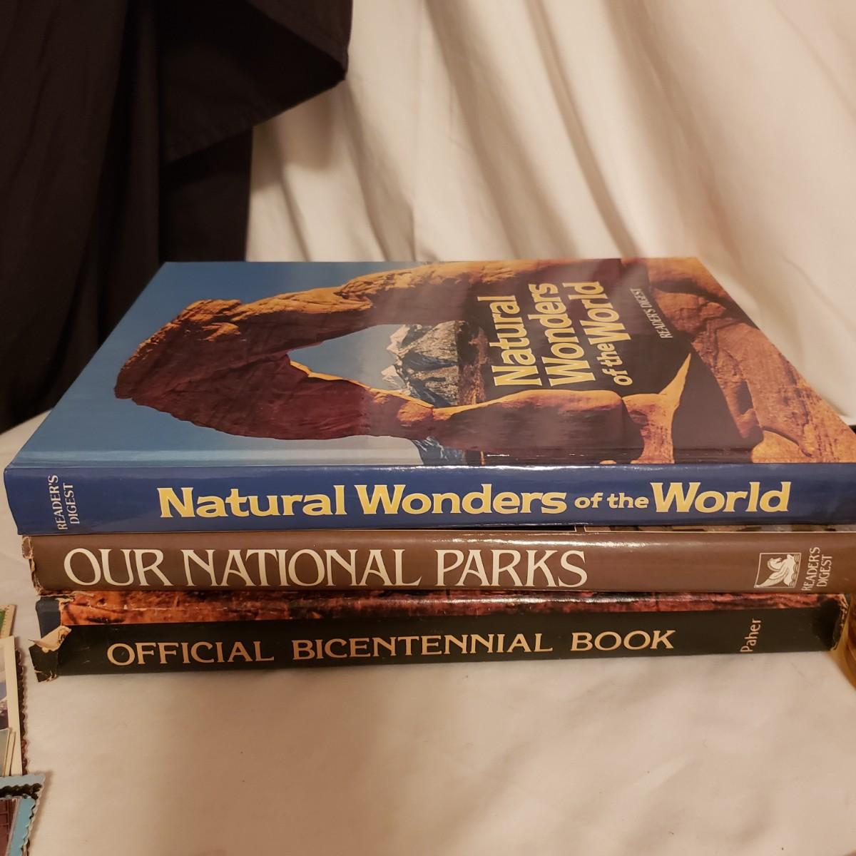 This plethora of vintage souvenirs almost feels like you don't have to travel! There are books from Readers Digest, to a stack of postcards, ashtrays from Las Vegas and don't forget the coffee mug from Mt. Saint Helen! The plastic Arizona platter measures 11" x 9". See pictures for so many details!