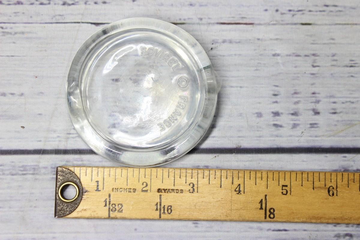 Vintage Sovirel France Glass Ashtray, there's no significant cracks or chips to the ashtray and is in good vintage condition. Check pictures for more details and for sizing.