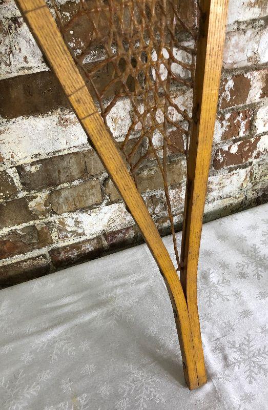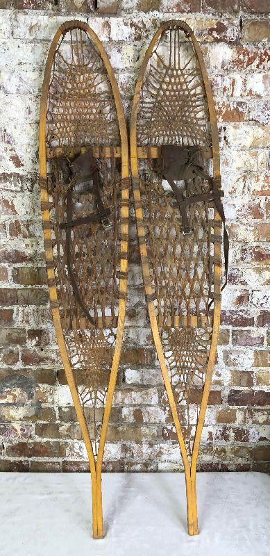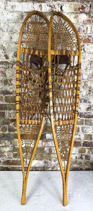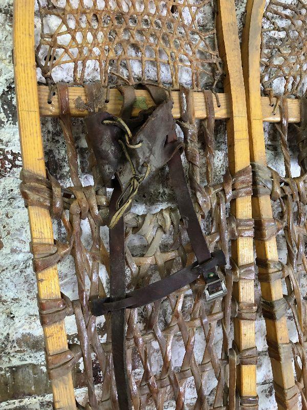 Here are a pair of 56" long handcrafted wood and rawhide snowshoes from Canada...Normal use...