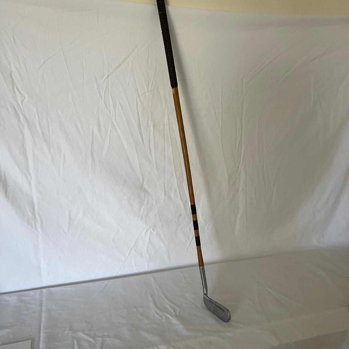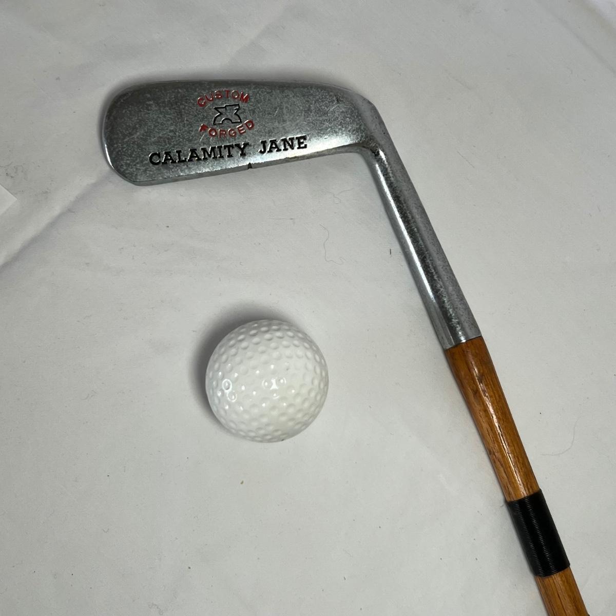 This vintage wooden shaft putter club was made by Spalding - Calamity Jane, it was custom forged. It has an old sticker from a previous owner below the handle that could be peeled off. Golf ball is not included.
