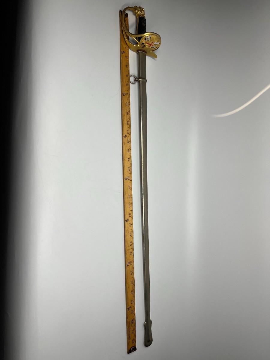 Vintage Spanish Officer's Parade Sword Lion Head Pommel Toledo Spain with Scabbard, there is no significant damage to the sword and is in good vintage & collectible condition. Check pictures for more details and for sizing.