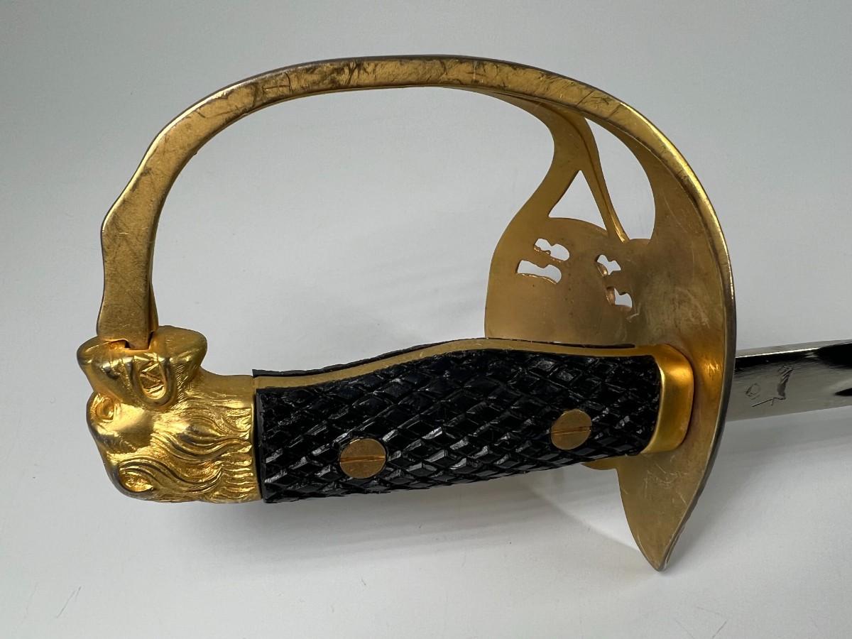 Vintage Spanish Officer's Parade Sword Lion Head Pommel Made in Toledo Spain with Scabbard