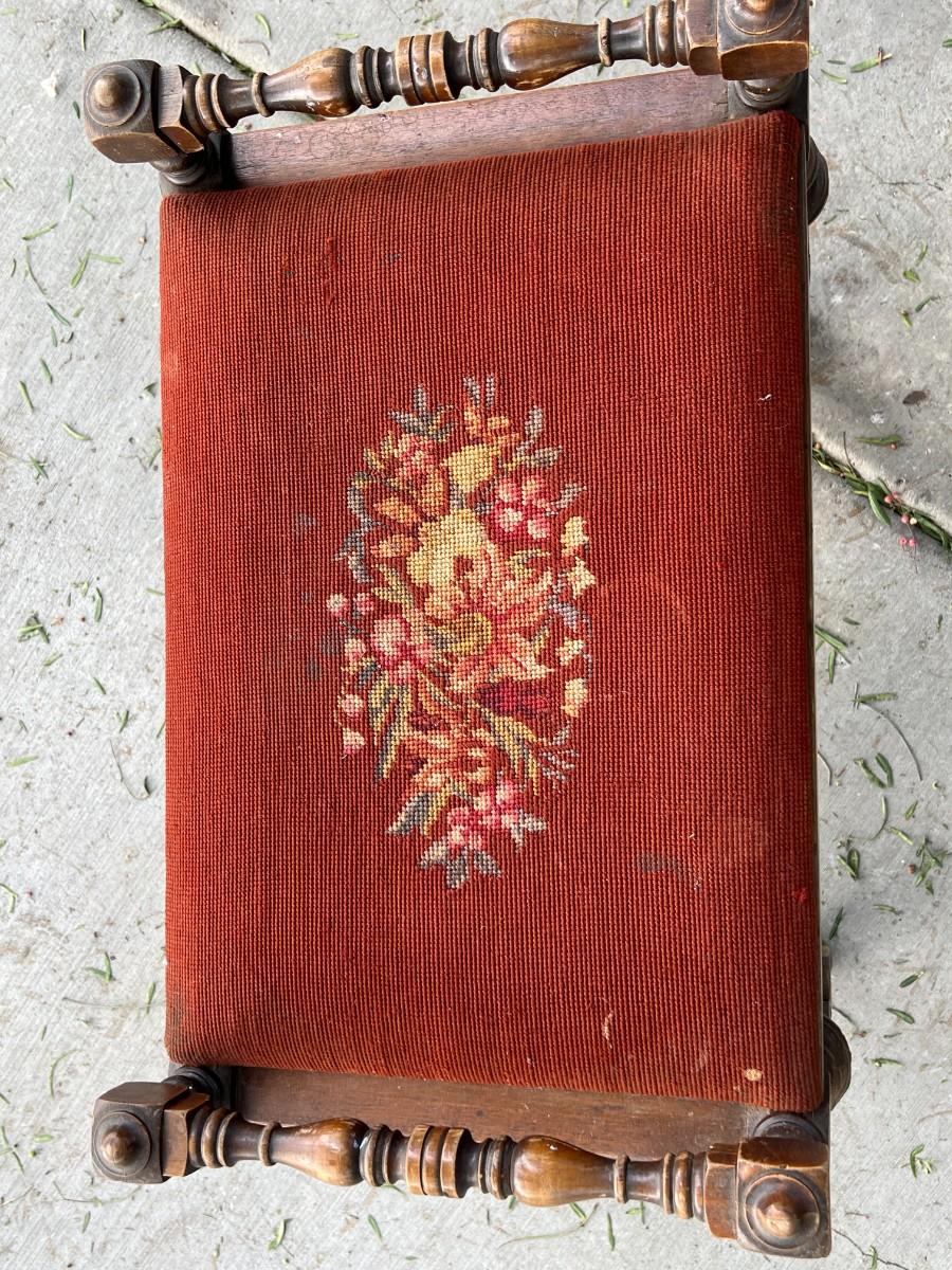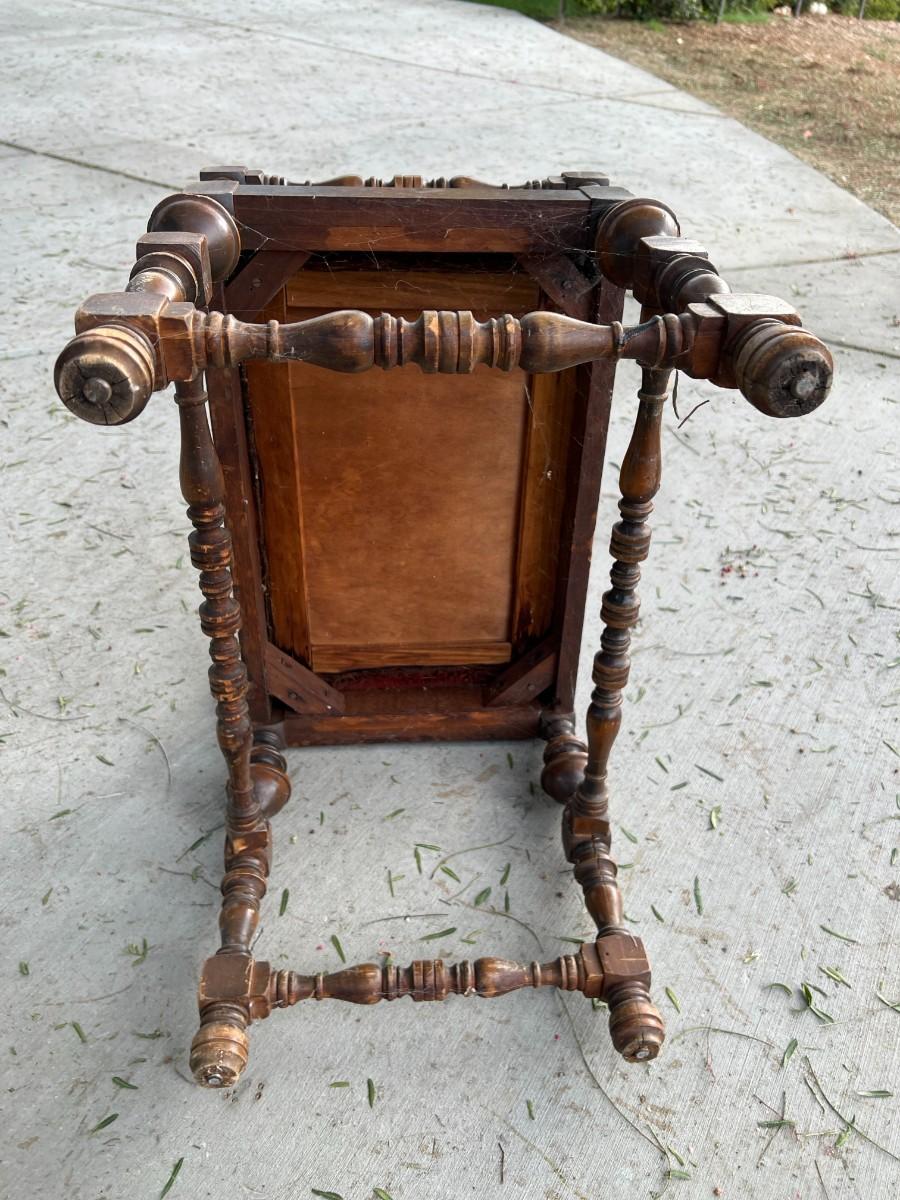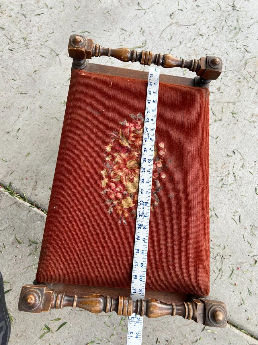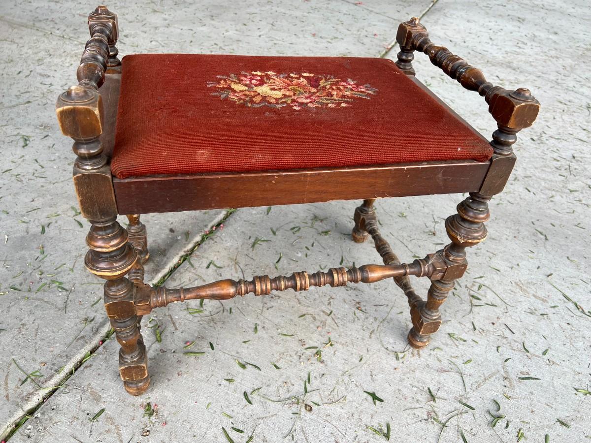 Vintage Spanish Style Small Carved Wood Cushioned Sitting Bench - IN LA HABRA HEIGHTS PICK UP ONLY