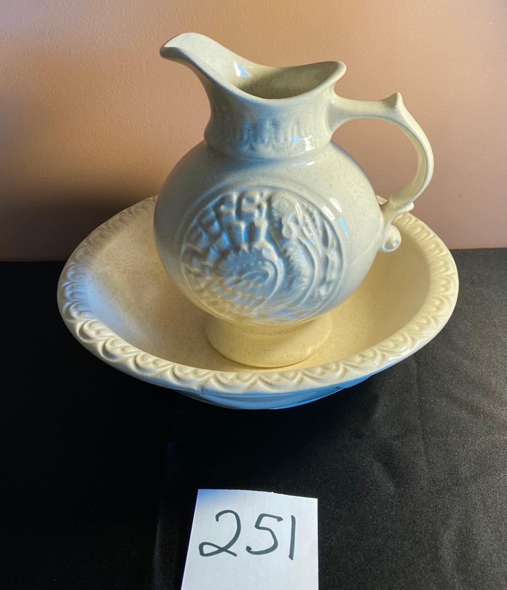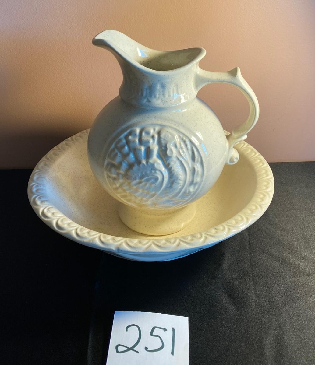 Vintage Speckled Turkey Pitcher and Bowl Set