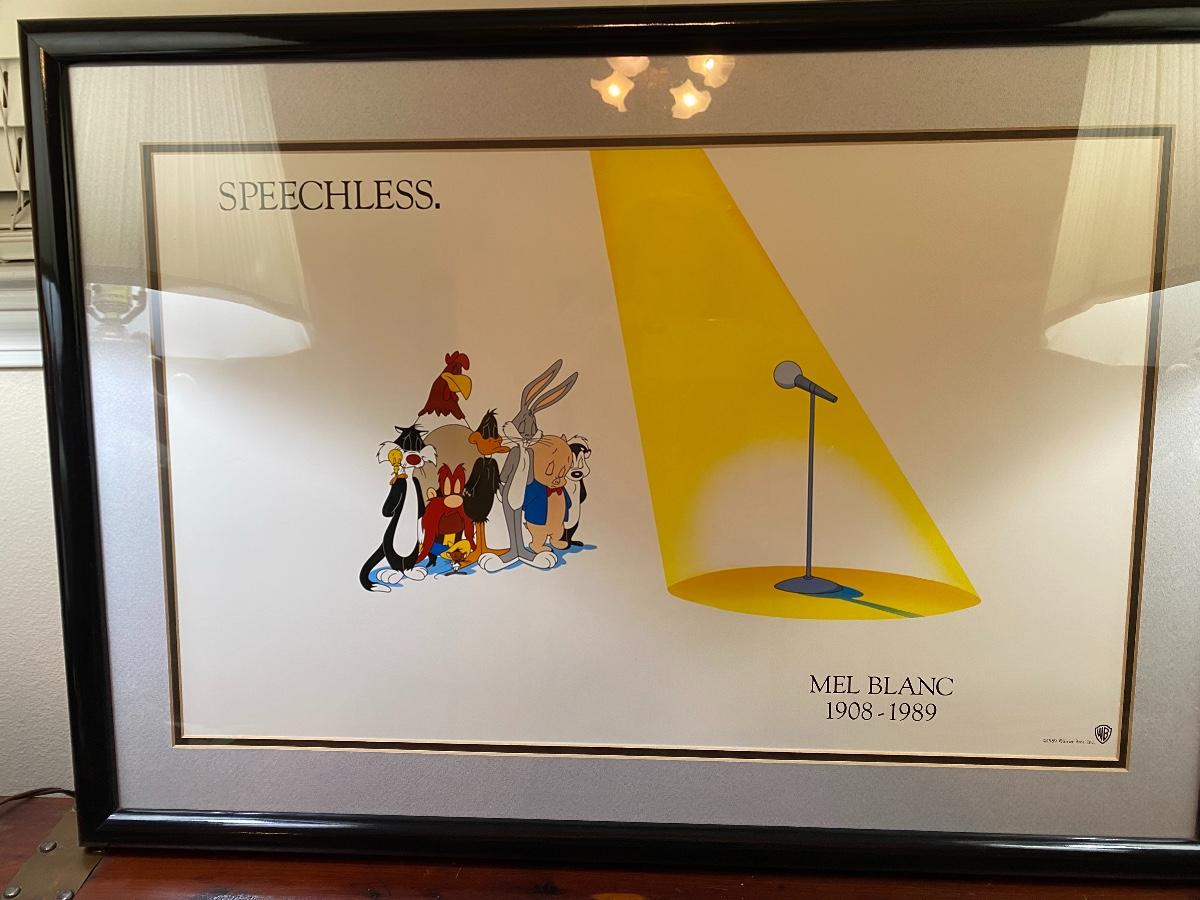 Vintage “Speechless” Mel Blanc framed movie poster. 31" x 22". Great condition, ready to hang