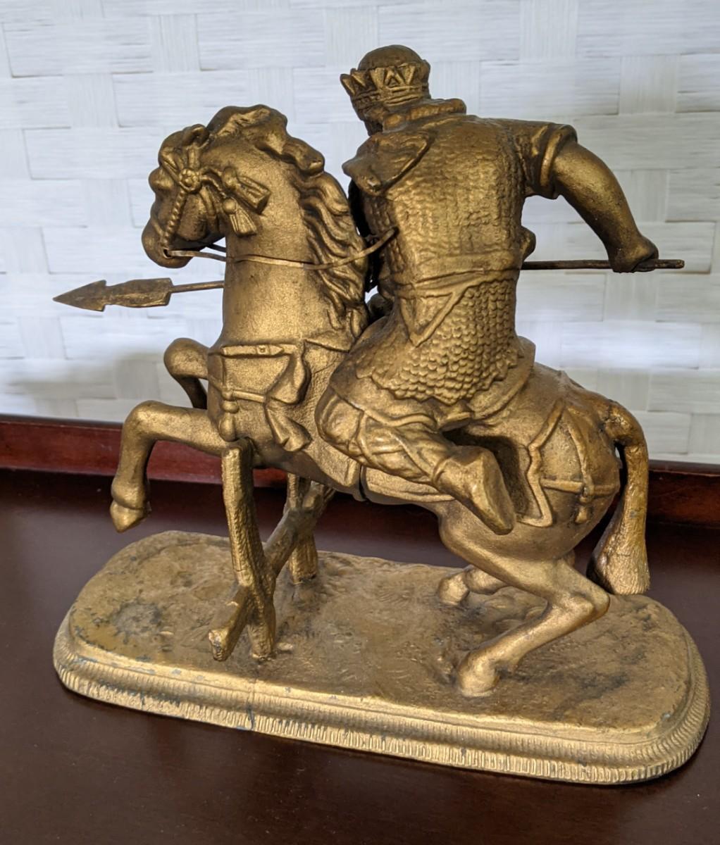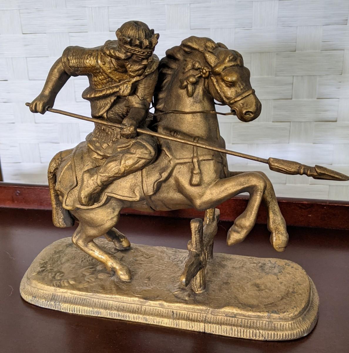 Vintage spelter metal Knight on Horse with spear-Clock topper