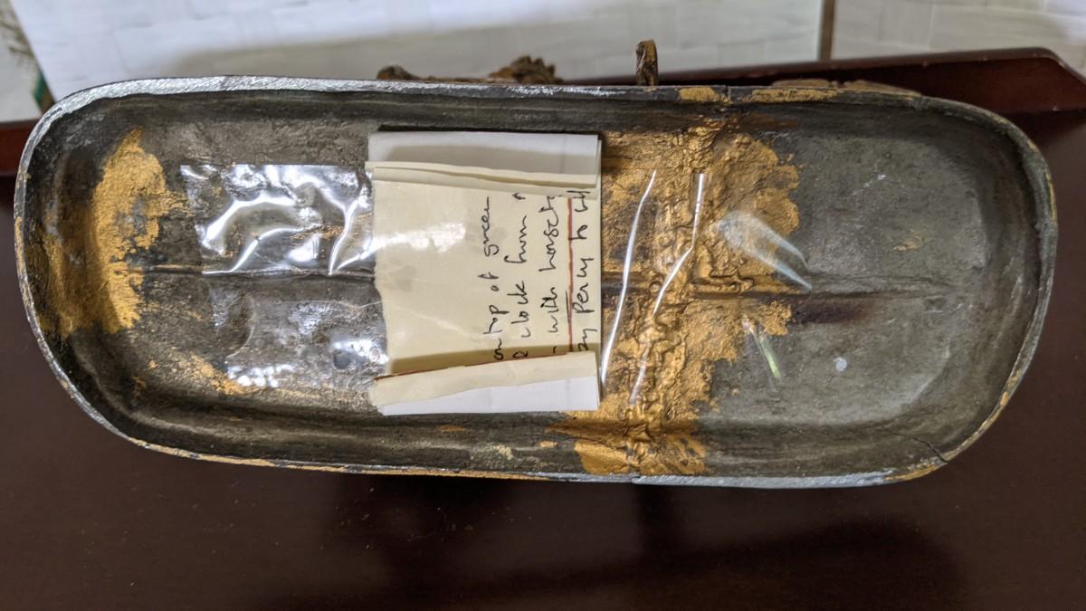 Note on bottom describes item. Was on a family clock. Repair made to tail.