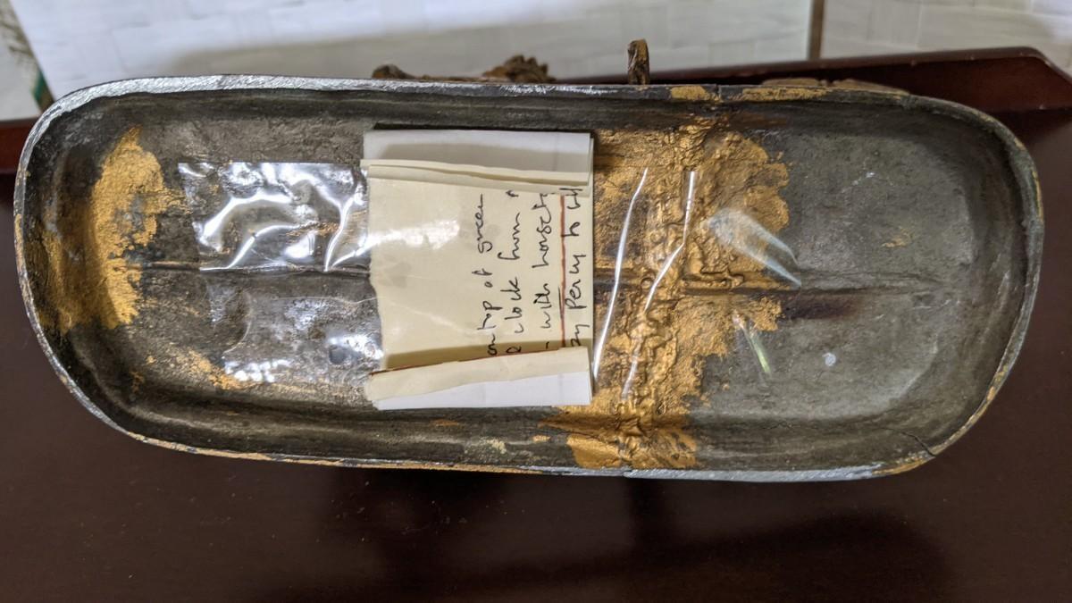 Vintage spelter metal Knight on Horse with spear-Clock topper Note on bottom describes item. Was on a family clock. Repair made to tail. As found in estate. Base is approximately 8" x 3 1/4". and 7" high.