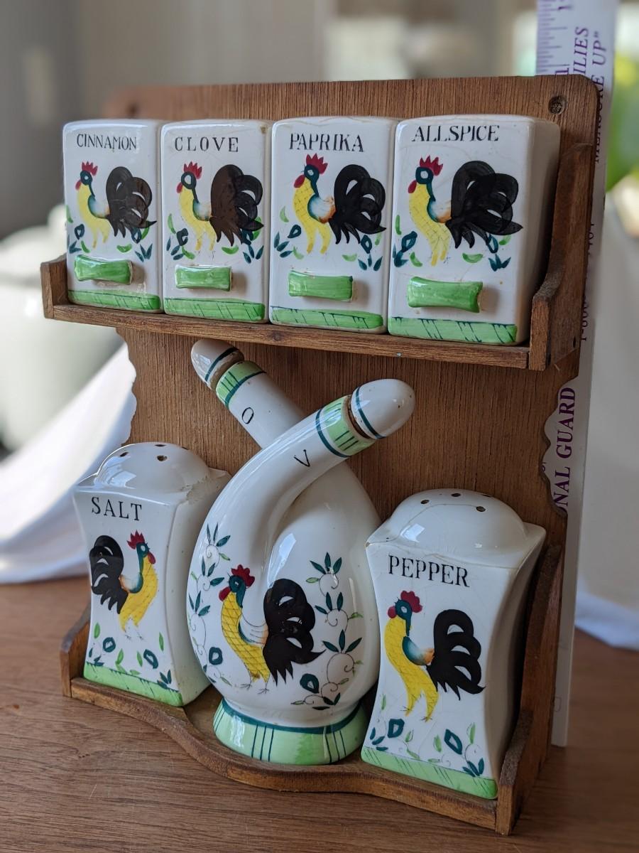 Vintage Spice Rack Roosters W/Vinegar & Oil