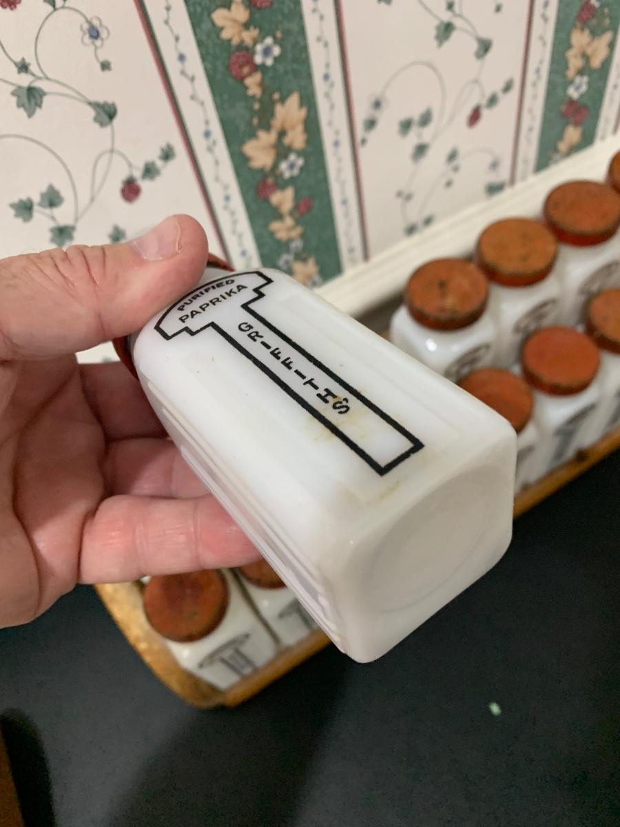 Vintage MCM 16 Piece Milk Glass Spice Set & Rack