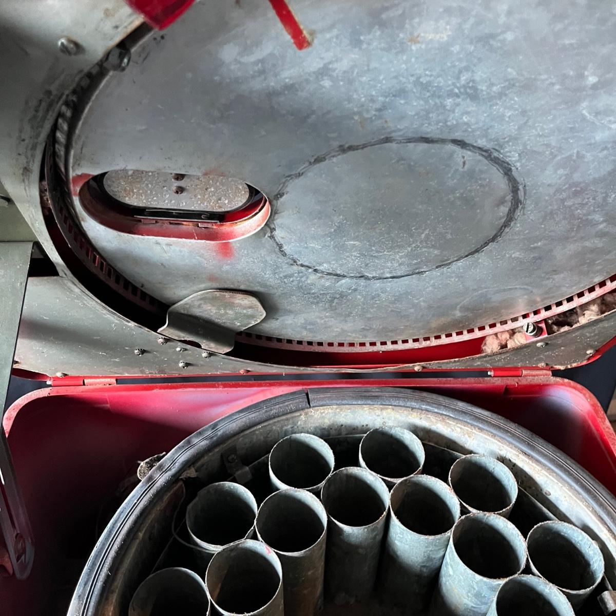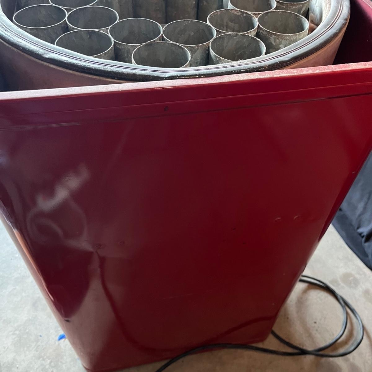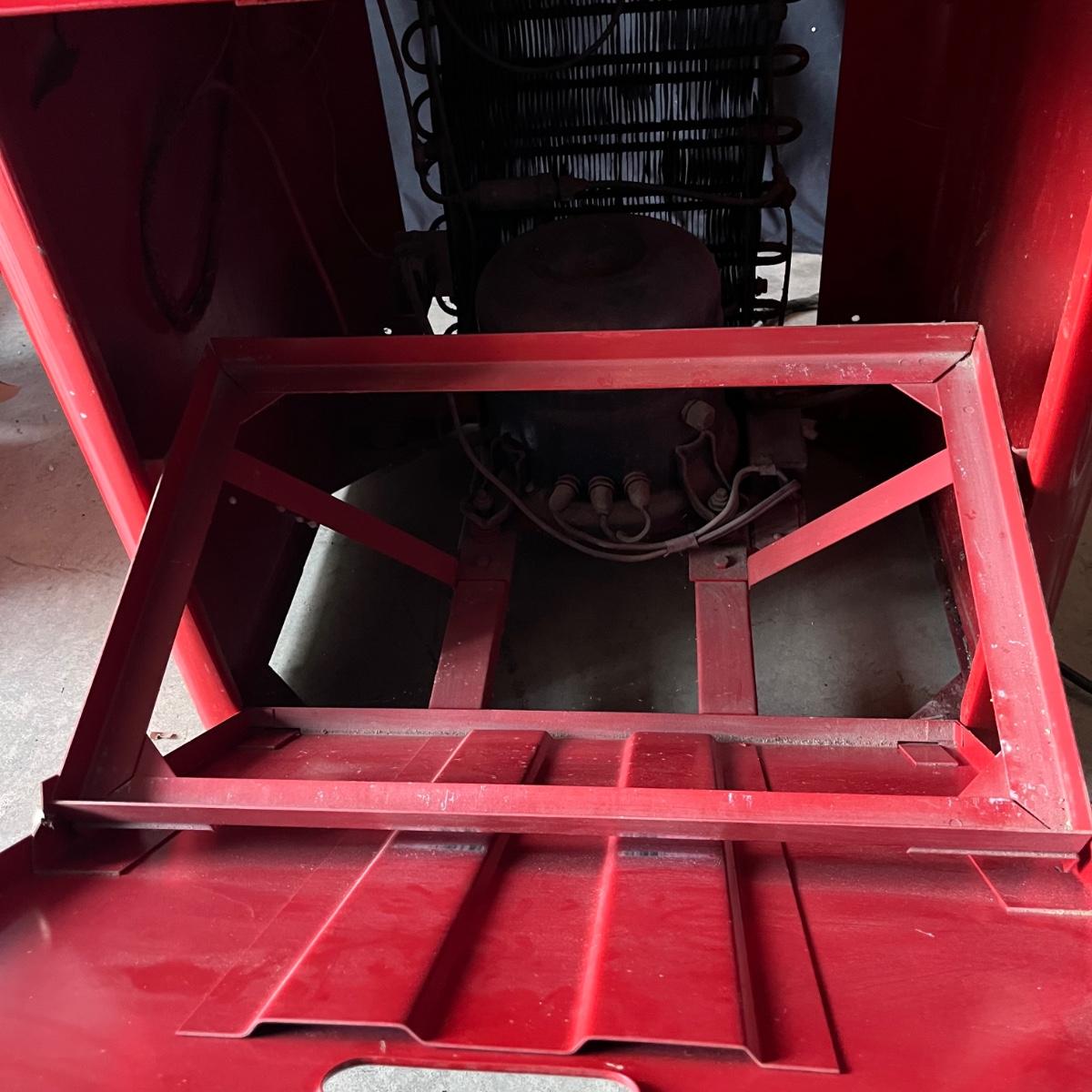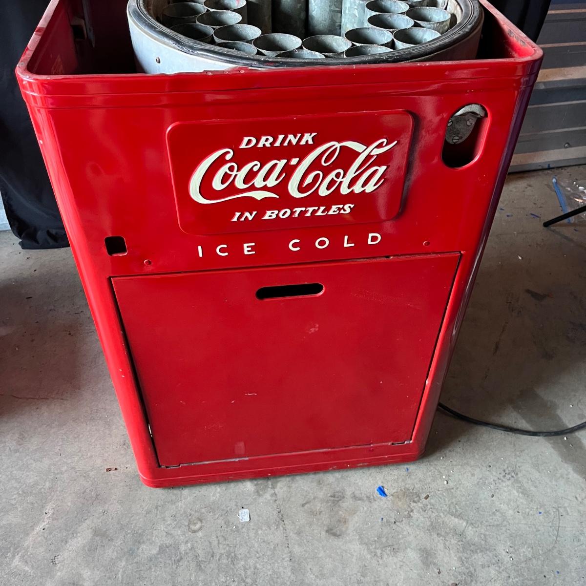 Lot includes a vintage metal spin top Coca Cola machine that powered on when tested. Machine is in good condition with a few scratches. Key is included. Machine measures 20” x 24” x 36”. Bring help to move as item is substantial.