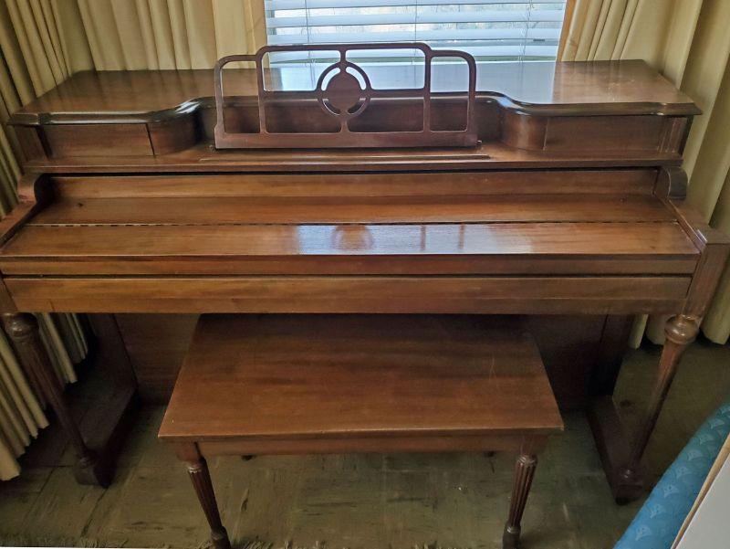 Piano is in beautiful condition but needs tuning. Bench is included. it is 50" wide, 24" front to back, and 31" tall.