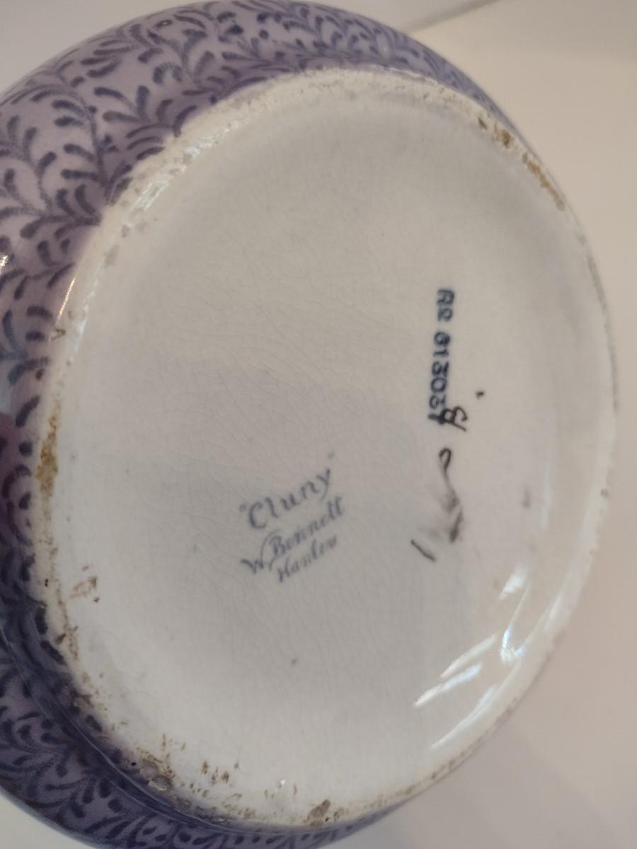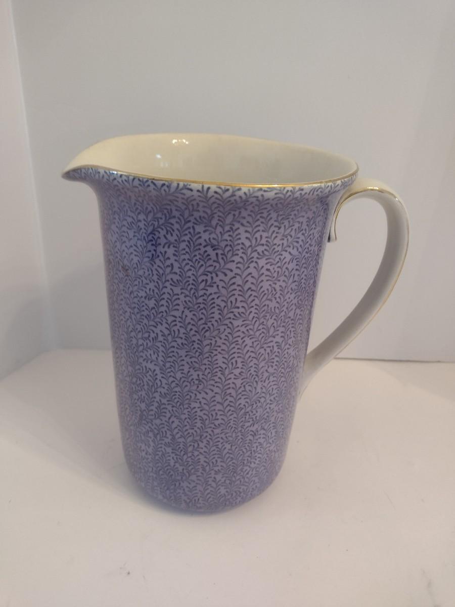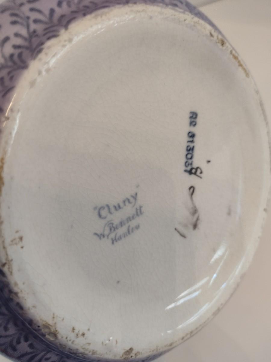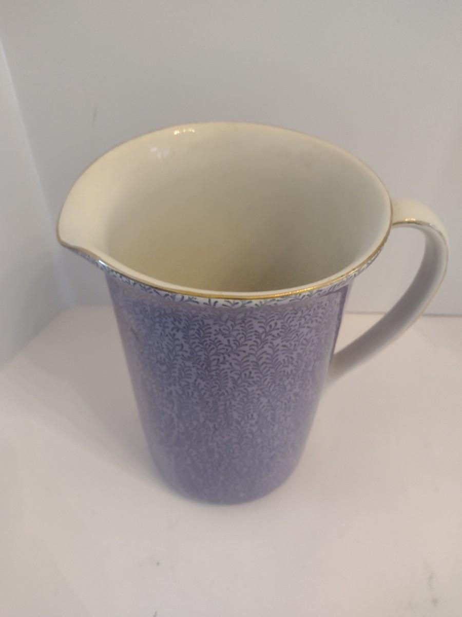 Vintage Spongeware Cluny Pattern Pottery Pitcher W. Bonnell Hanley