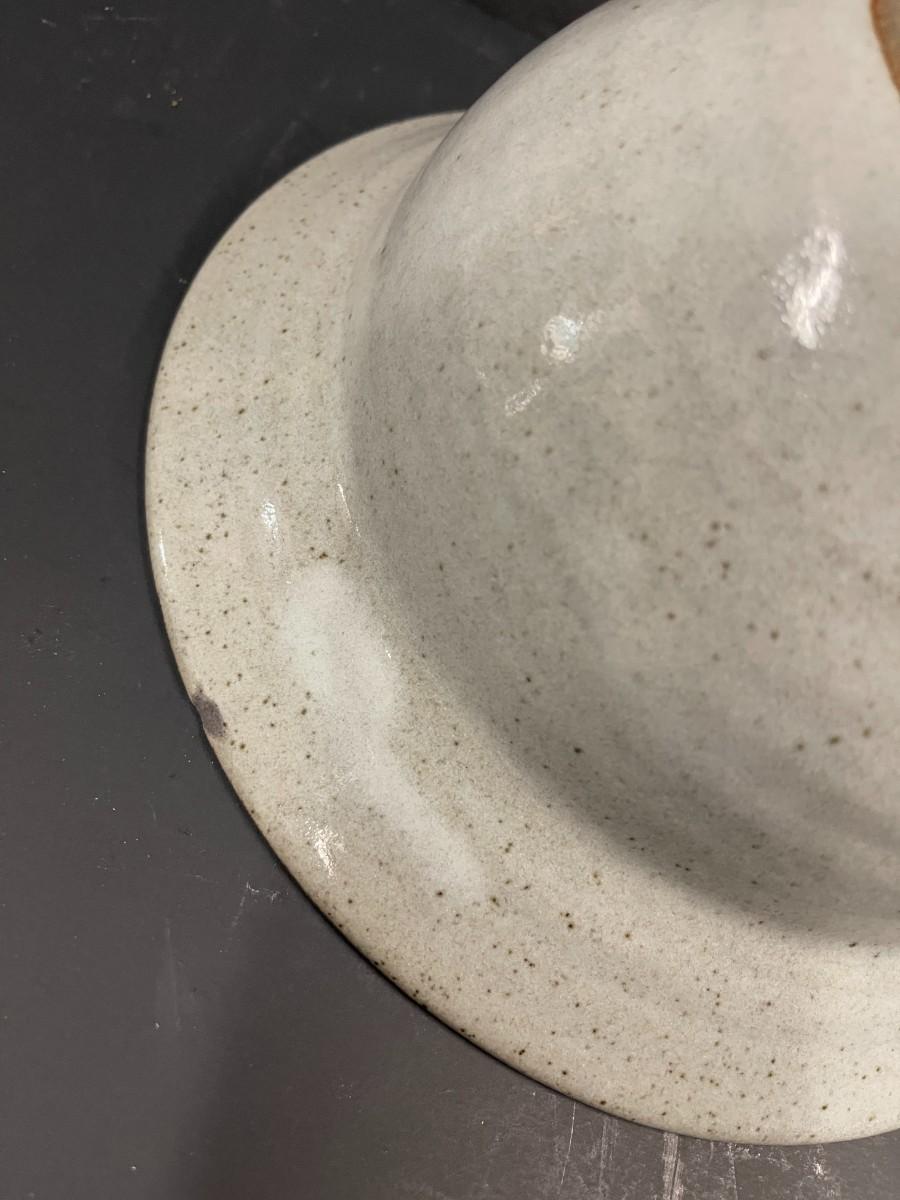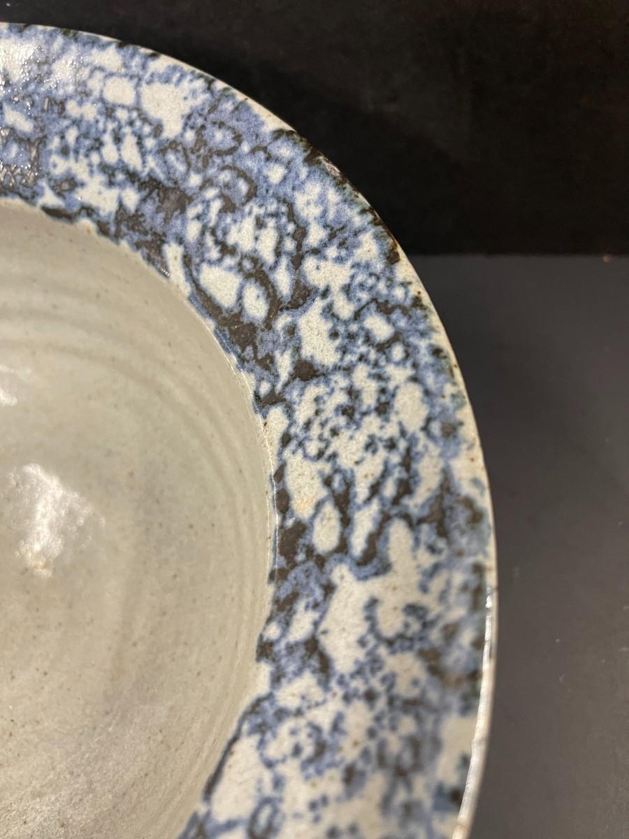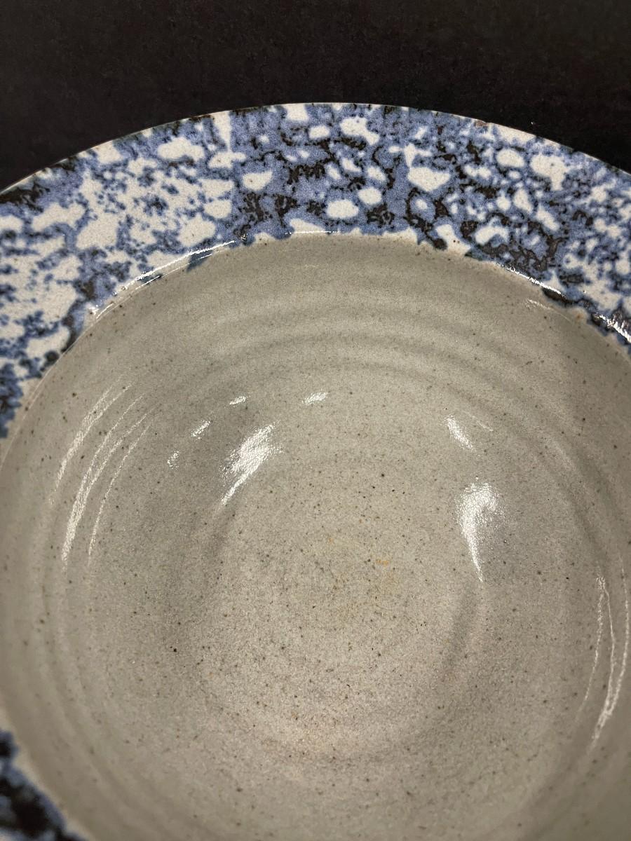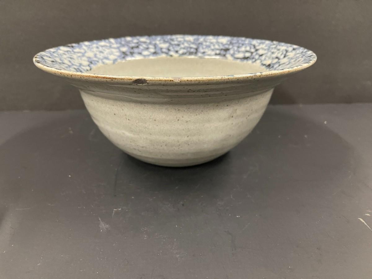 Vintage wide rimmed spongeware pottery bowl. 9 1/2".