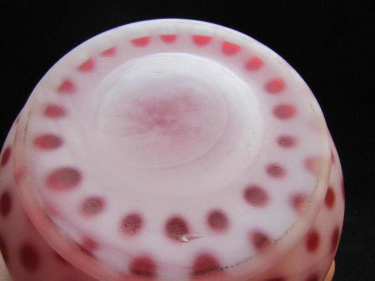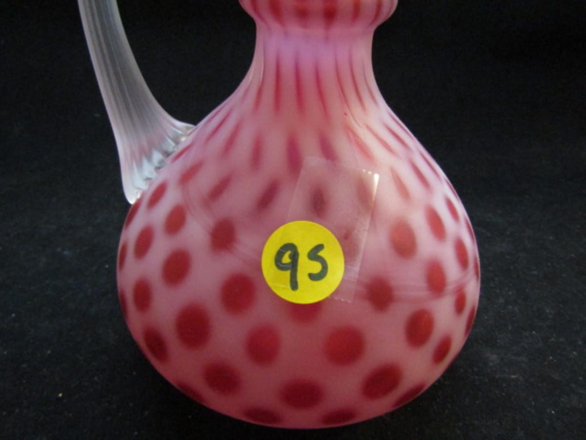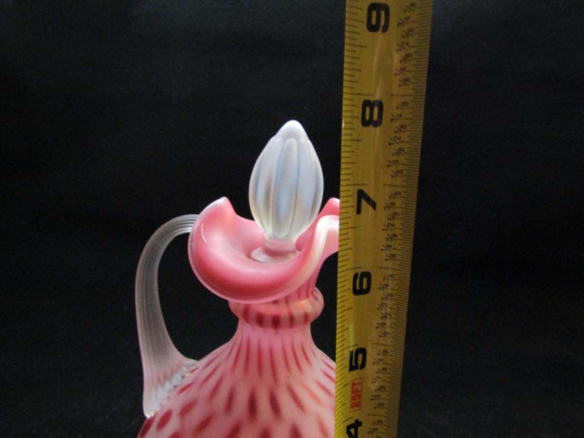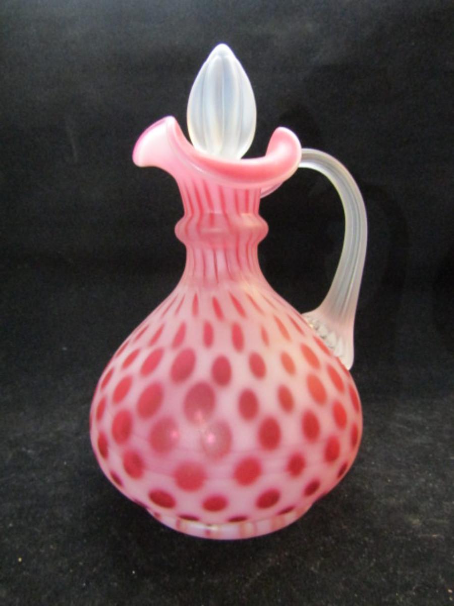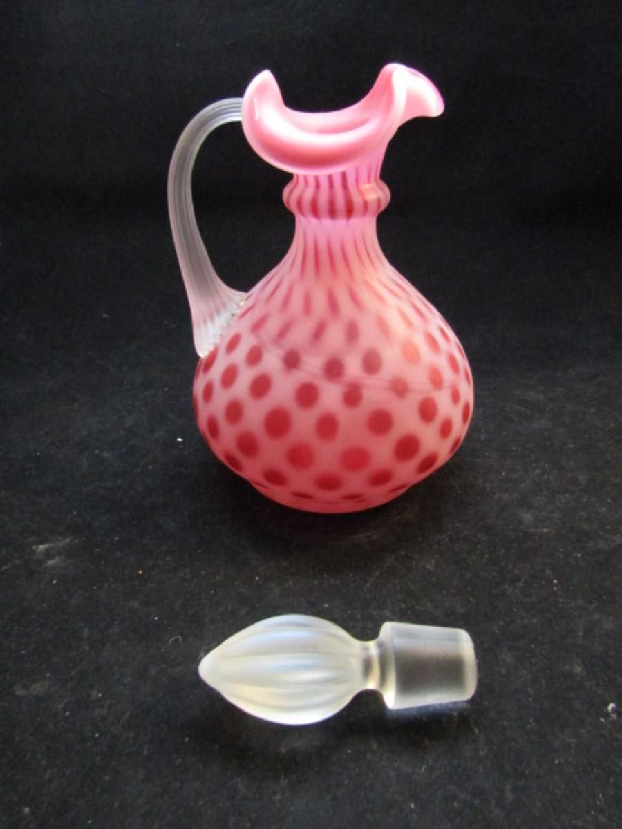 Vintage Spotted Cranberry/Pink Glass Cruet (#95). Possibly Fenton.