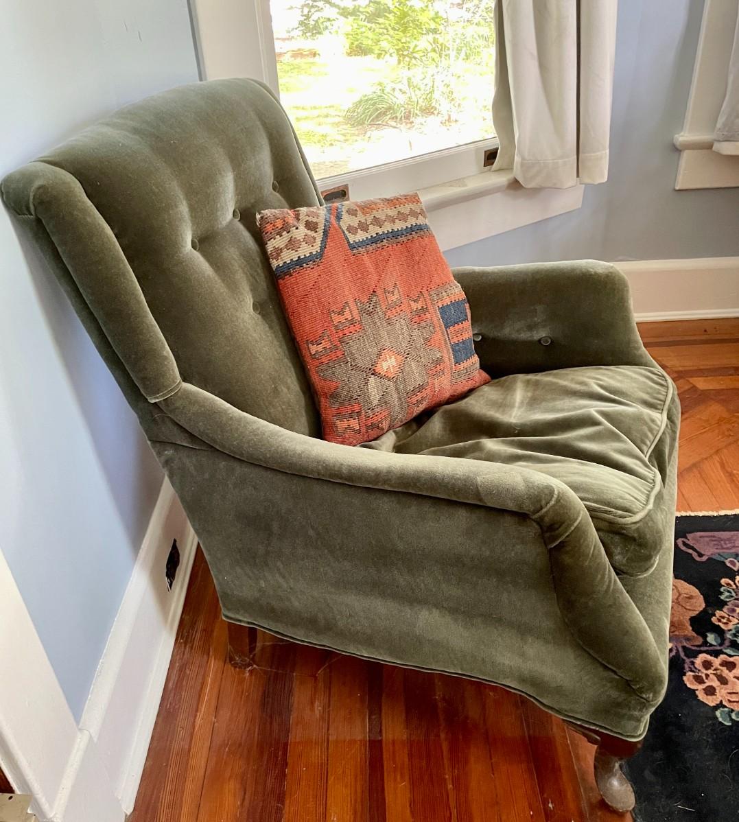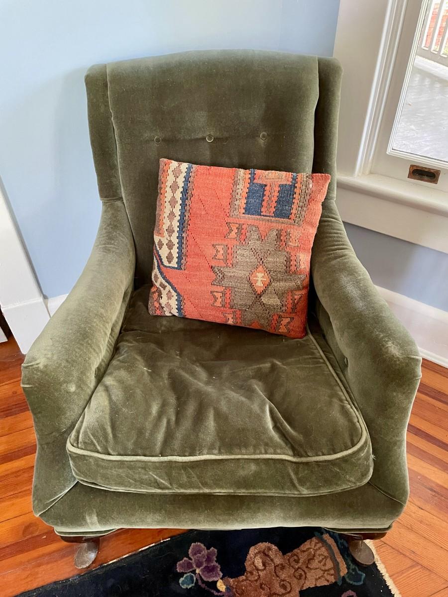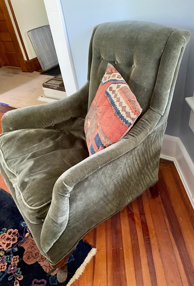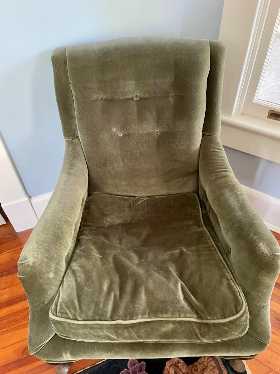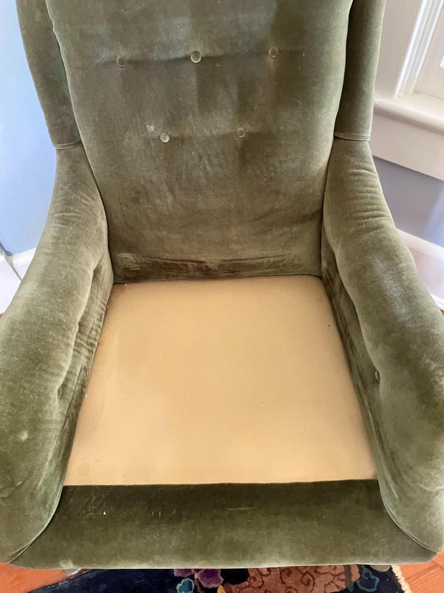Vintage spring-seat green upholstered arm chair