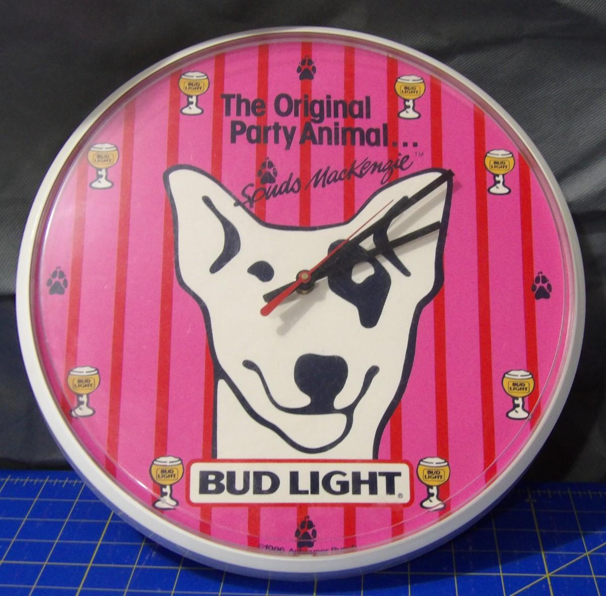 1986 Spud MacKenzie Bud Light Wall Clock. Excellent Condition.
