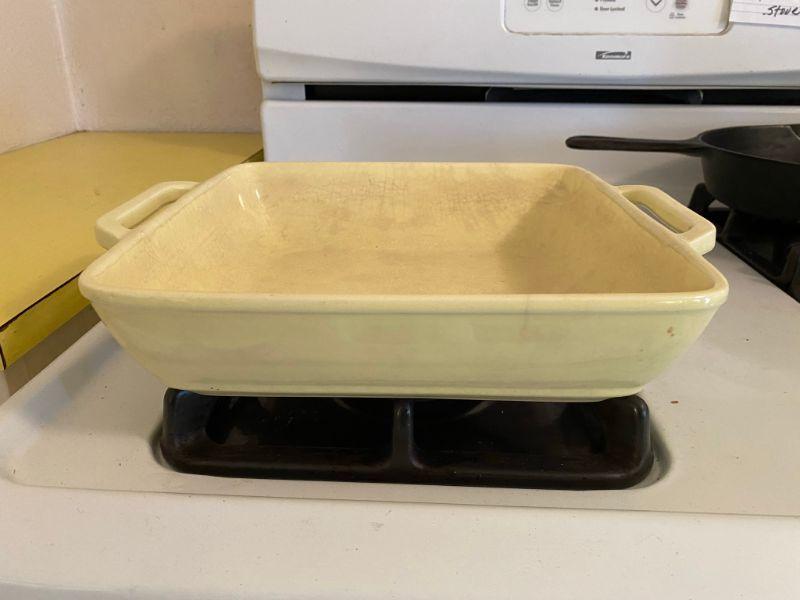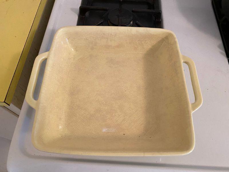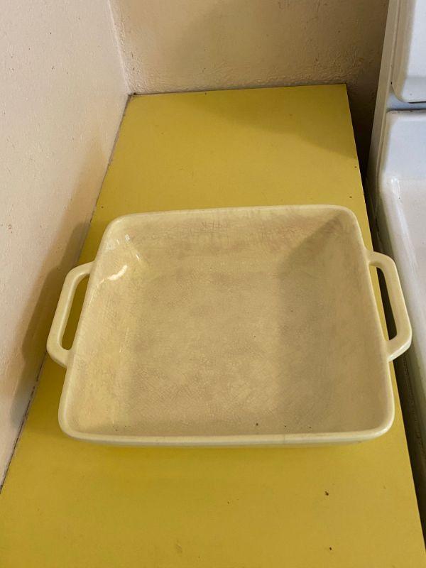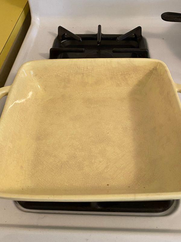 Vintage square casserole dish, Pale yellow. Made in Japan, Has crazing, no chips.