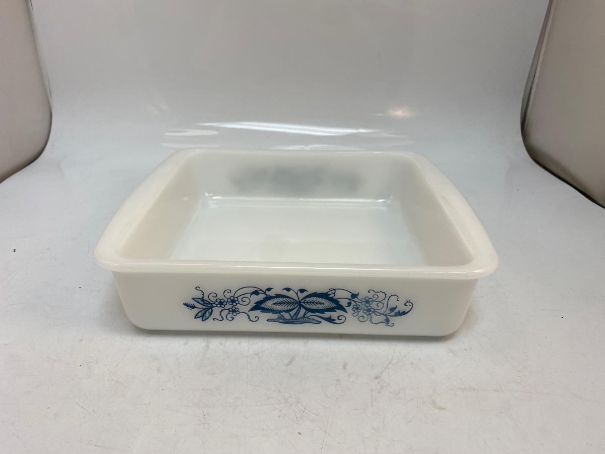 Vintage Square Glasbake 9" Baking Dish Brownie Pan Blue Onion Pattern