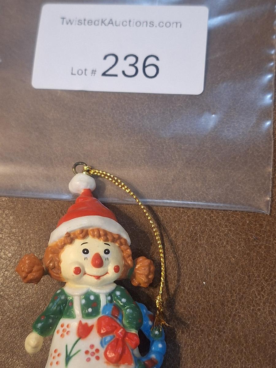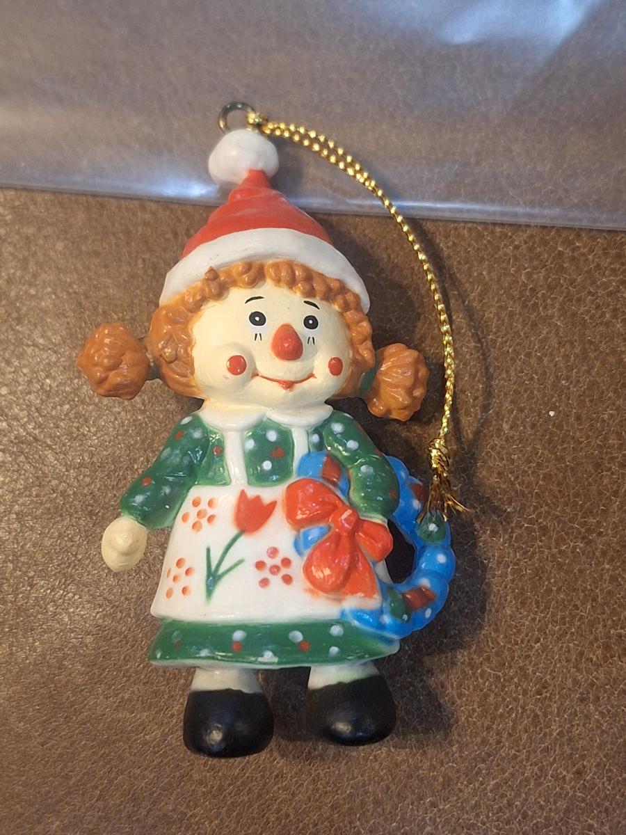 vintage S&S Inc. by UM Raggedy Ann Christmas ornament.