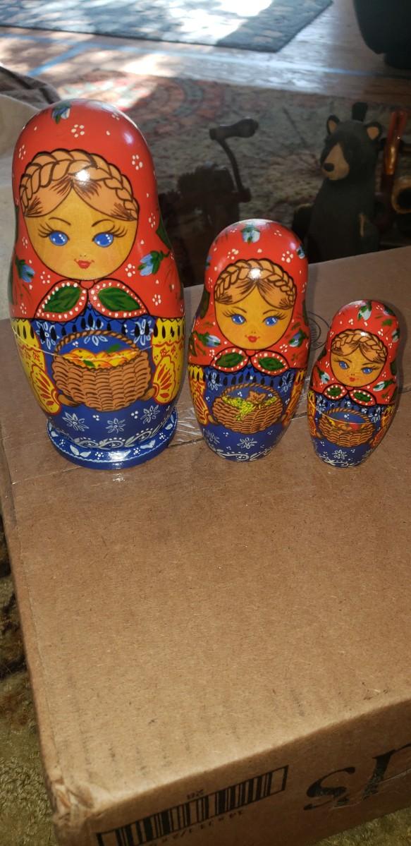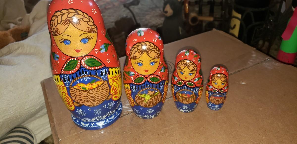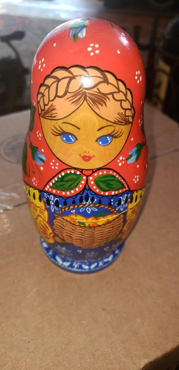 Traditional wooden Matryoska "poppy" flower Stacking Dolls from the Czech Republic.
